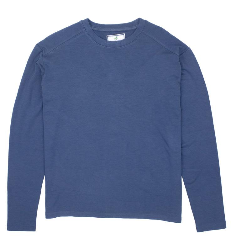 swoosh | river blue PTG0125-RRB geese | teal PTG0138-TEA stay true | chrome grey PTG0122-CHG lakeside | ice grey PTG0112-ICG golden holiday | light blue PTG0050-LTB moose | steel blue PTG0140-SBL SIGNATURE TEE LS | 100% pima cotton | $38 S-3X JULY FLIGHT 11