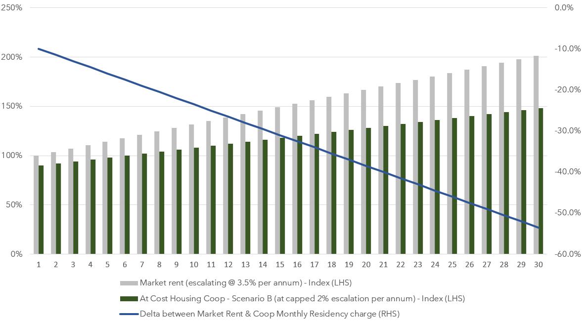 ' Missing Middle ' co-op with initial Residency Charge, indexed @ 2 % pa