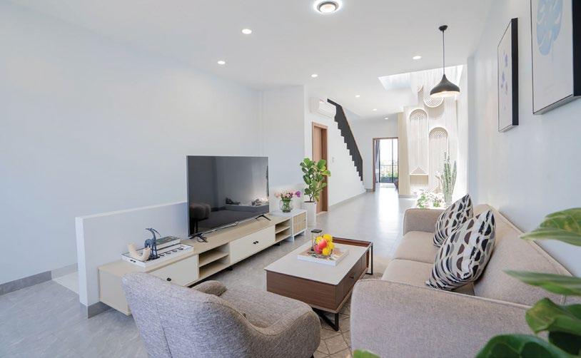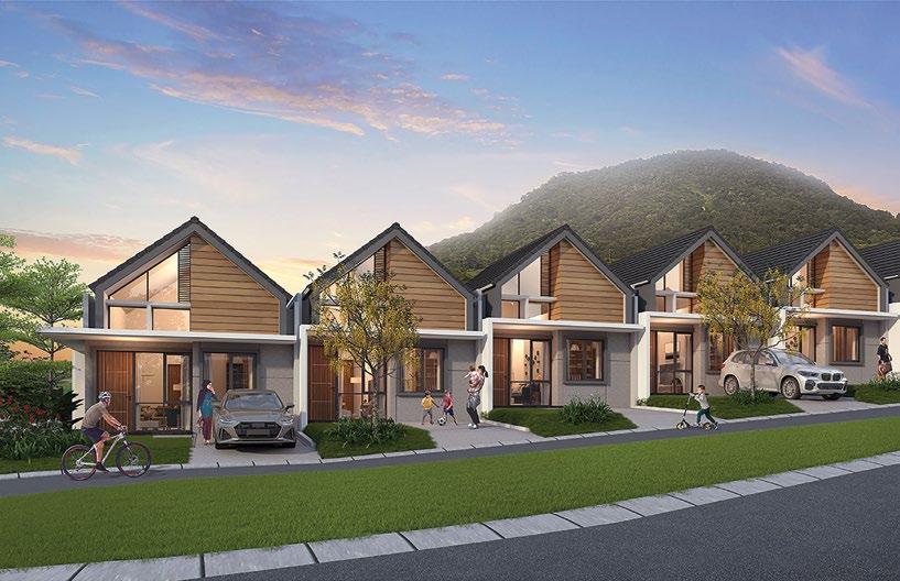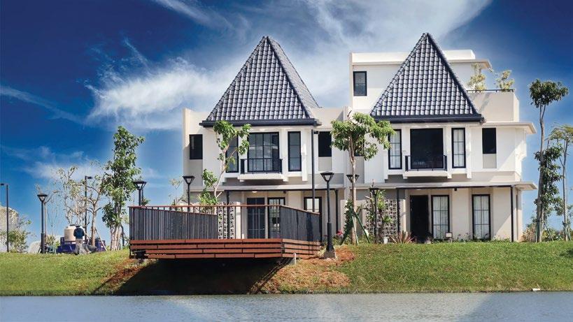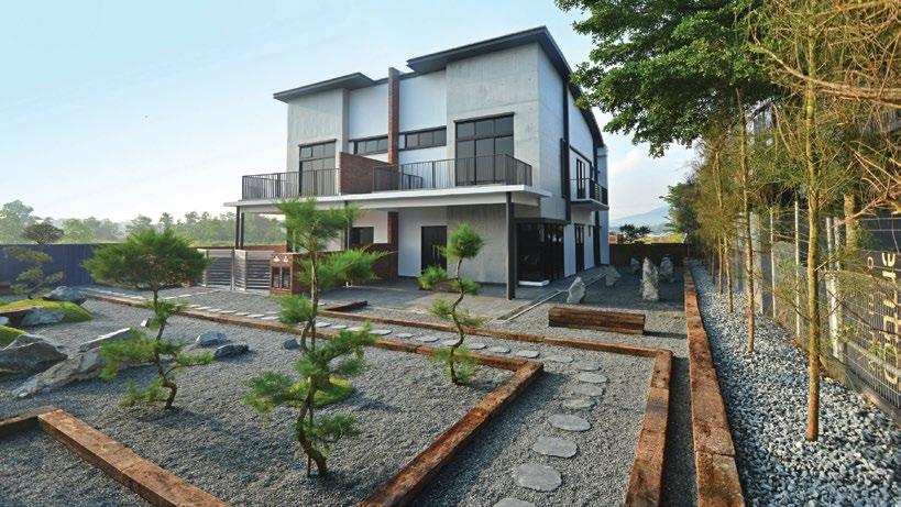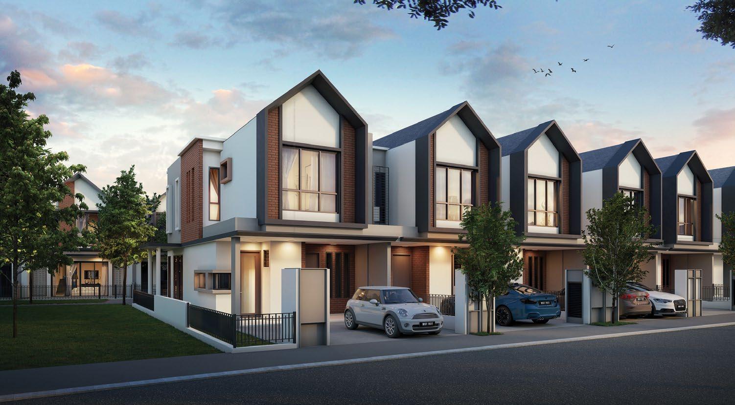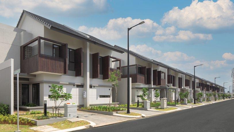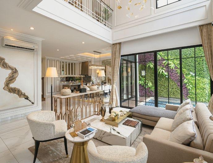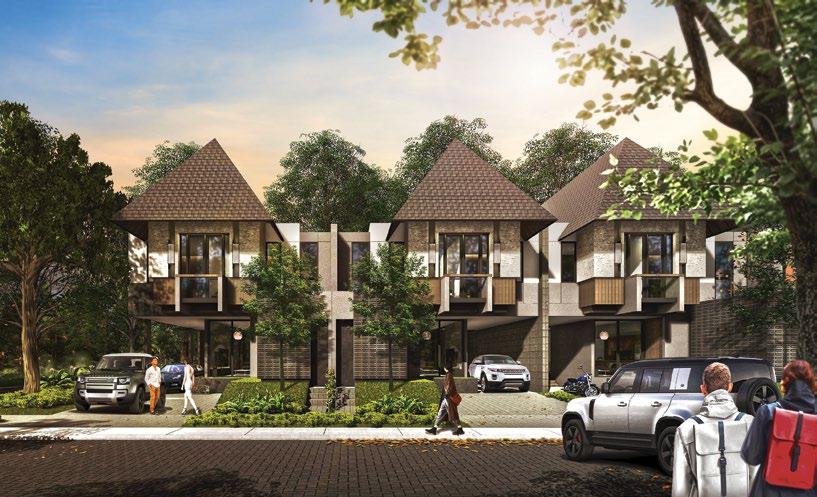 The interiors, lit through large windows, are distinct with brown and white décor that connect various areas of the villas, shophouses, and home offices.