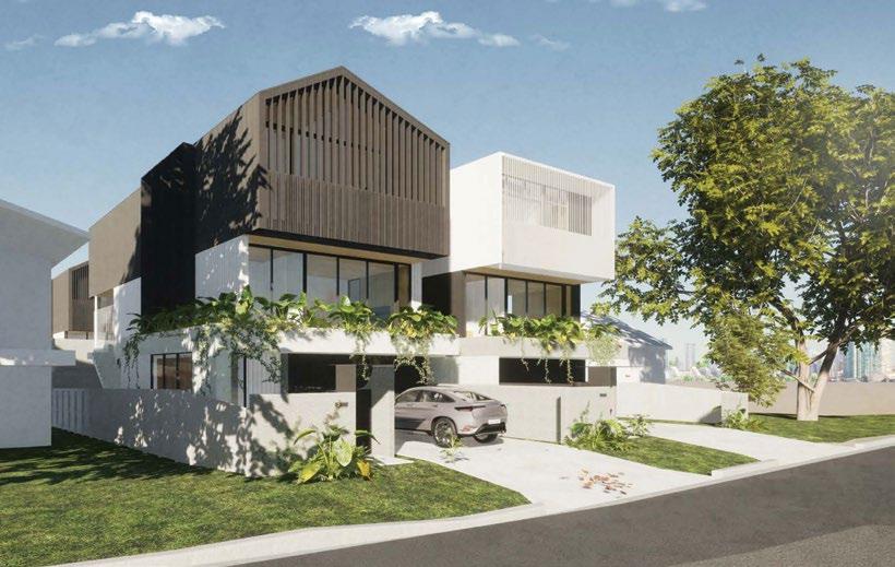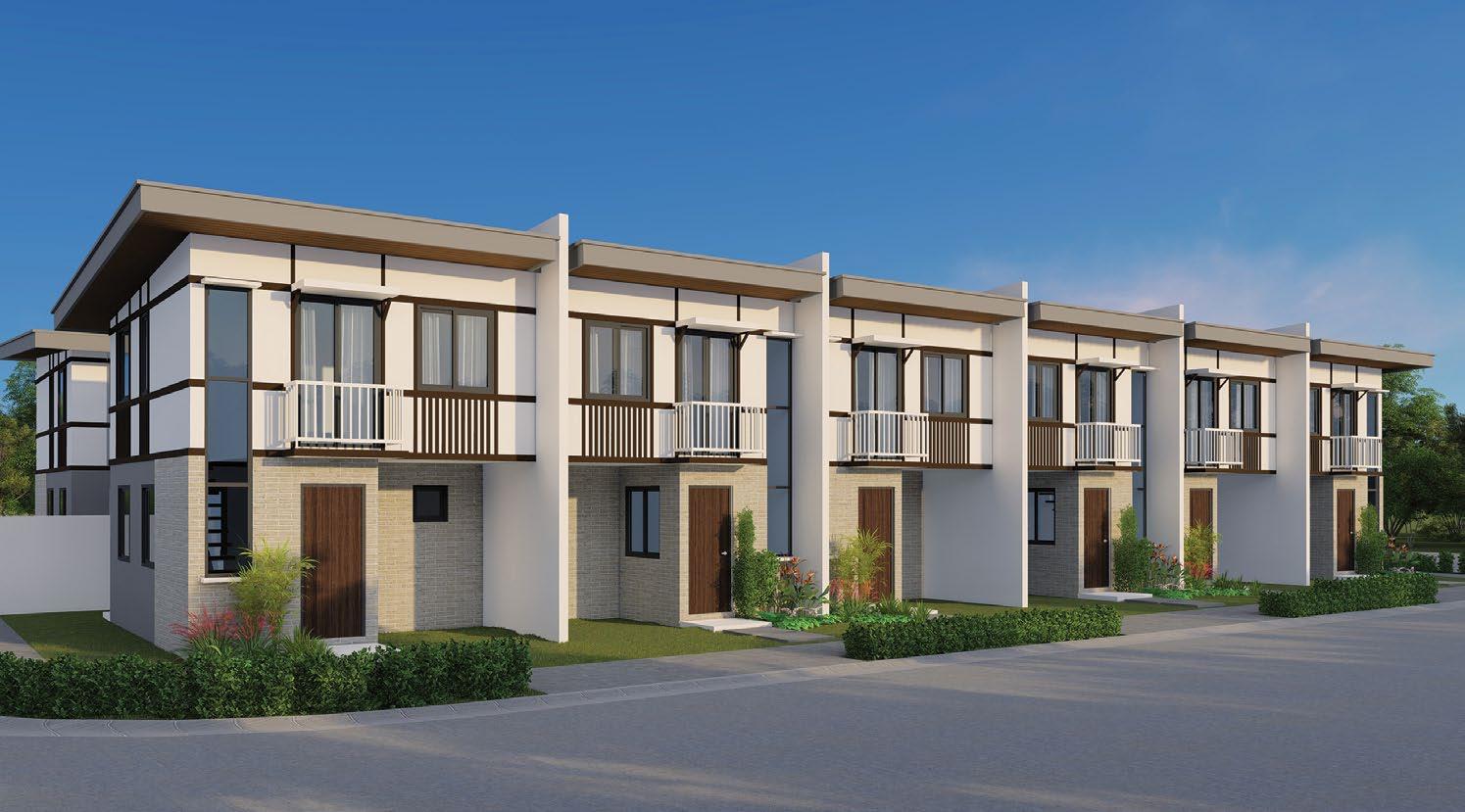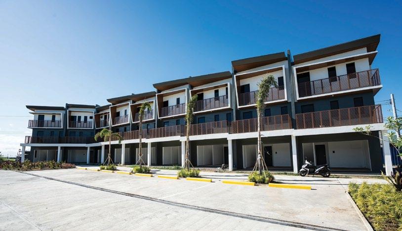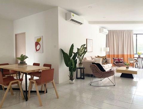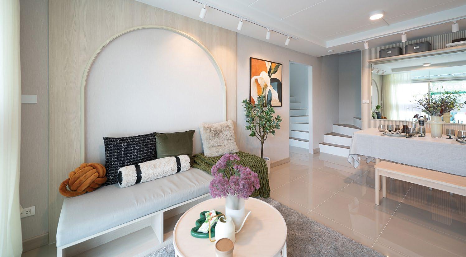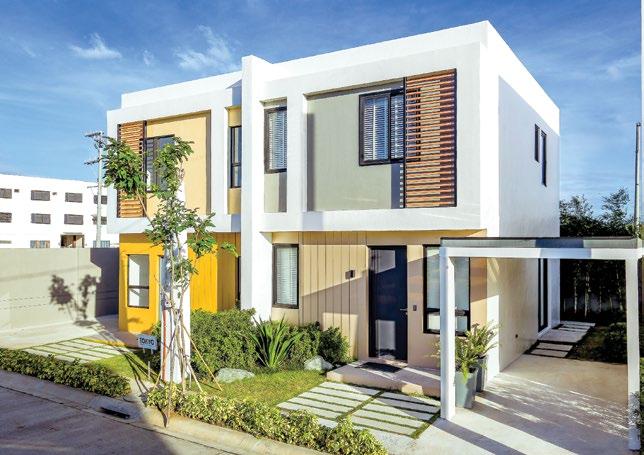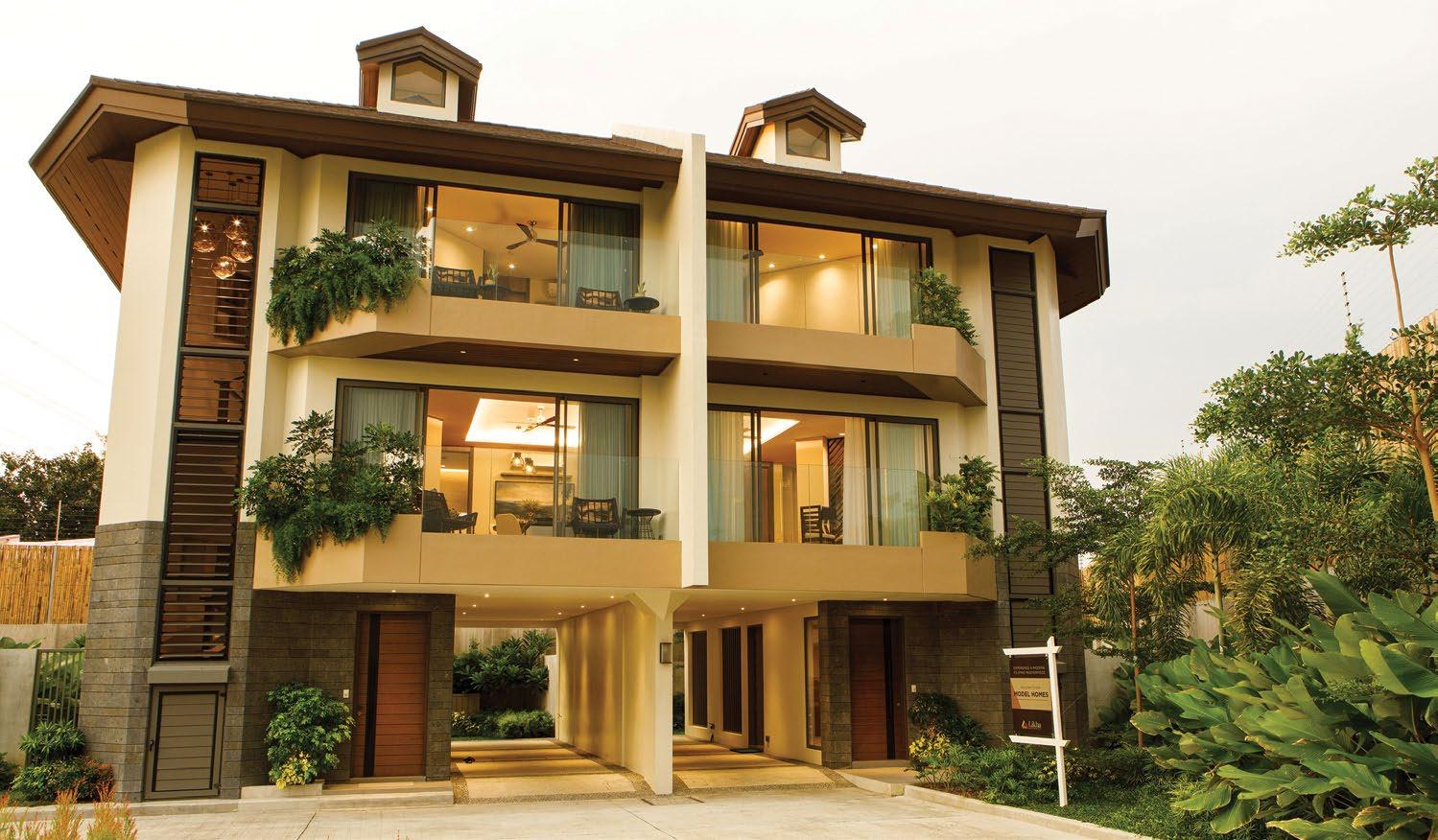 The interiors, lit through large windows, are distinct with brown and white décor that connect various areas of the villas, shophouses, and home offices.