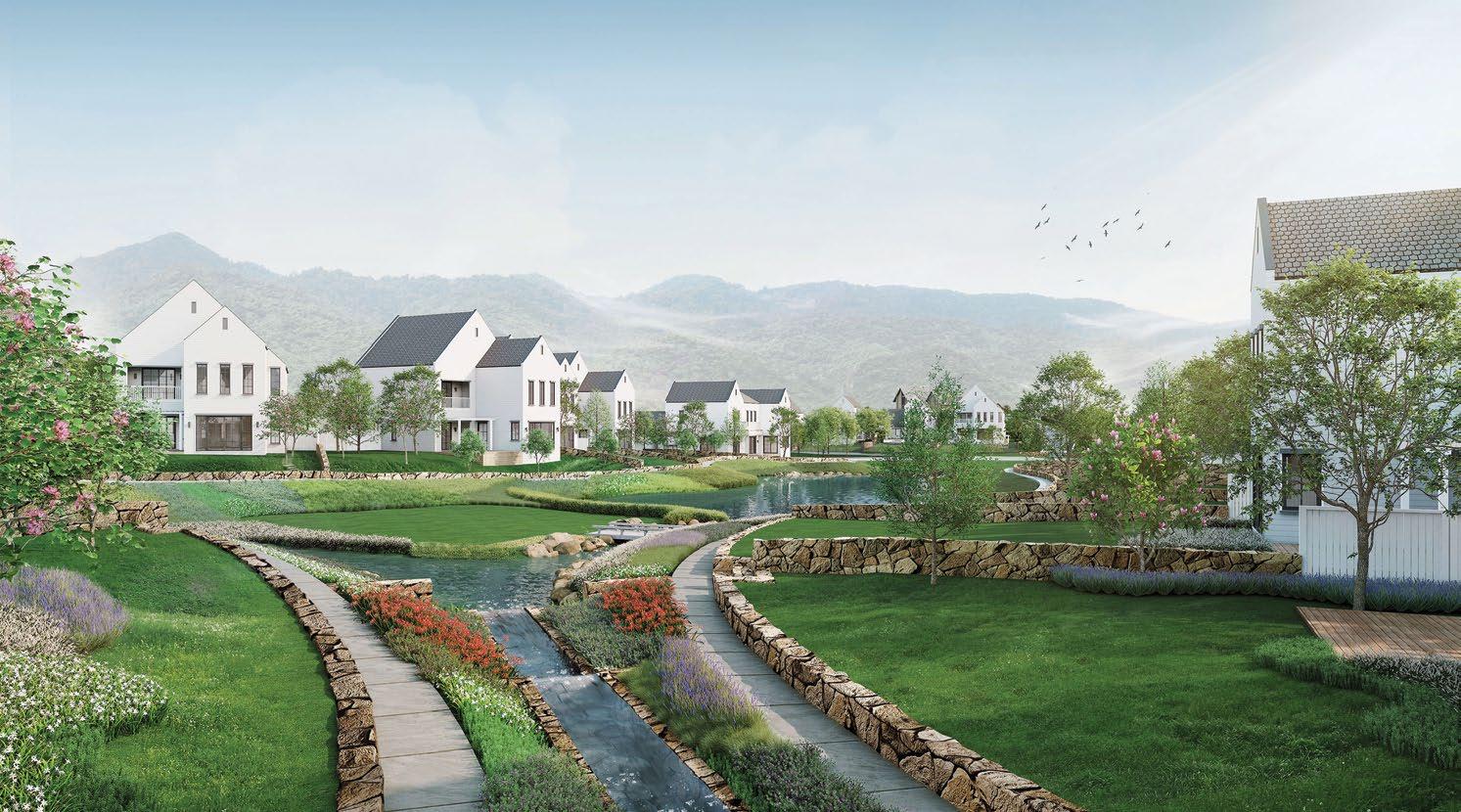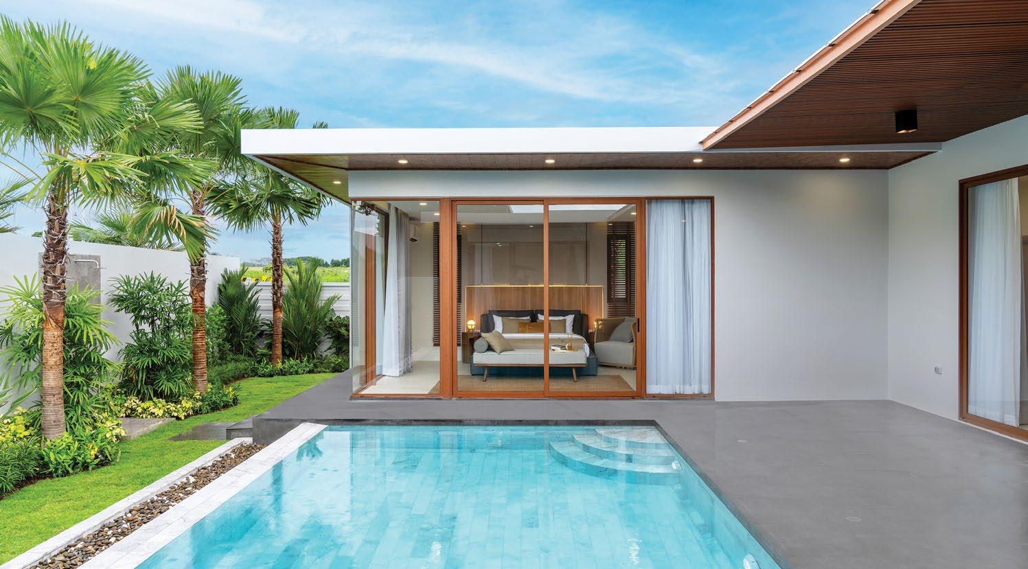 These detached, pitch-roofed villas follow a minimalist design, featuring light décor and large windows, with clean lines and good use of space.