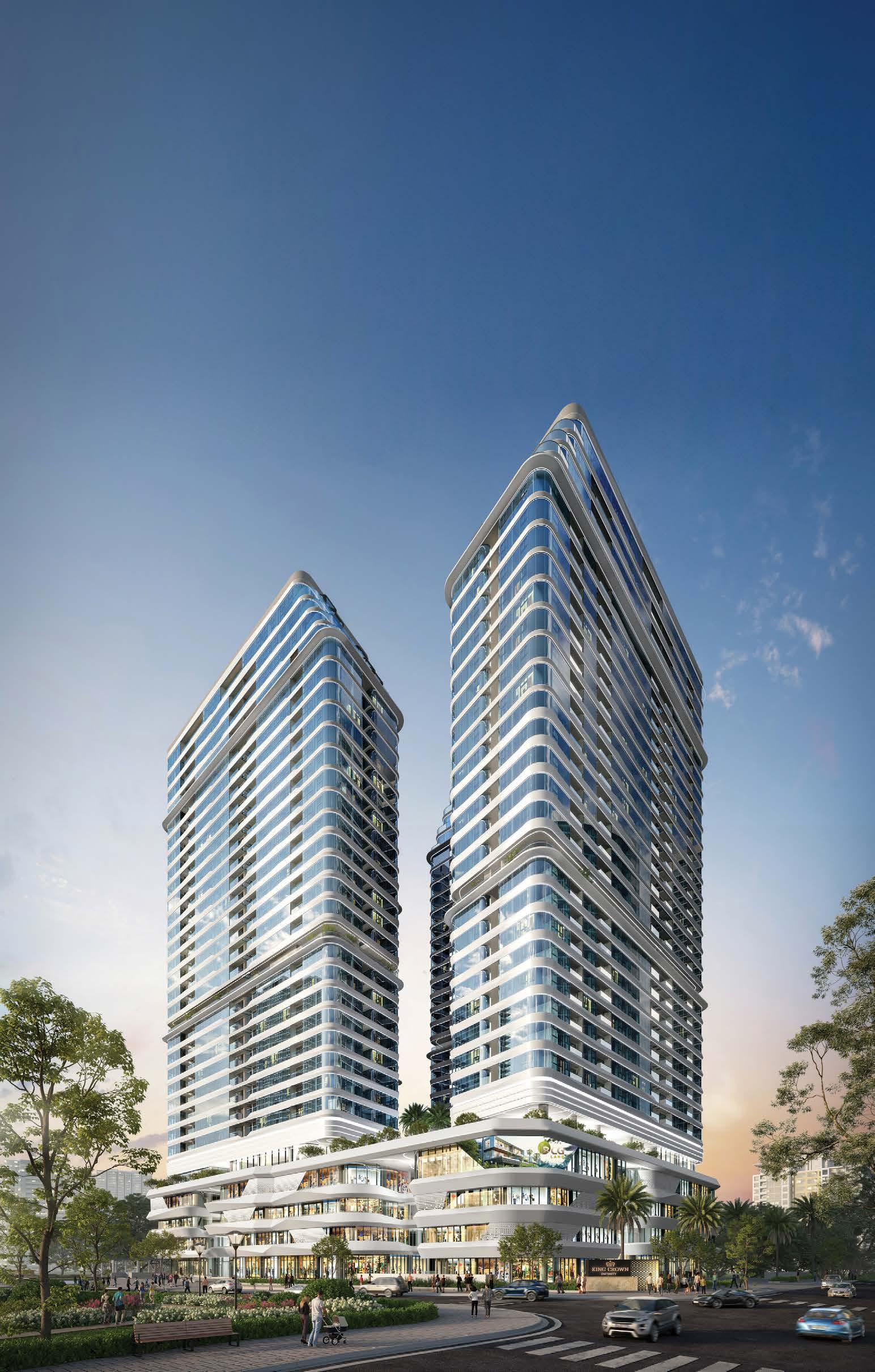 King Crown Infinity is designed to change the skyline of Thu Duc City, a new urban unit within Ho Chi Minh City. The development is mainly composed of two 30-storey towers called Artemis and Apollo, home to a wide selection of apartments, shophouses, and officetel units. Both buildings utilise glass fibre reinforced concrete (GFRC), creating curvaceous blocks with outstanding durability and stability.