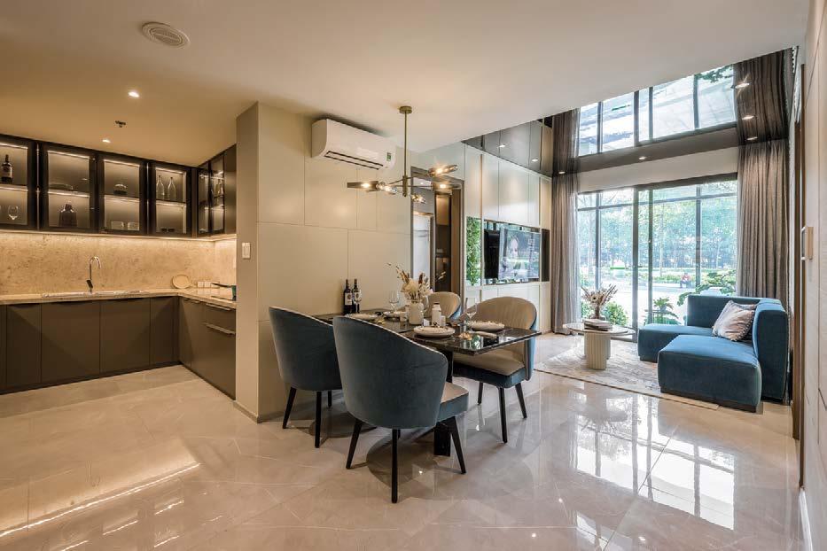 This luxurious resort residence project features the largest man-made waterfall in Vietnam, with a 12-metre-high, 43-metrewide connection to the green way secluded in the heart of the city. Another highlight is the sky deck on the building’s 22nd floor, looking out to magnificent views of BDNC. More than 20 facilities cater to residents’ health, fitness, and spirituality such as the meditation garden, gym, yoga area, and tennis courts.