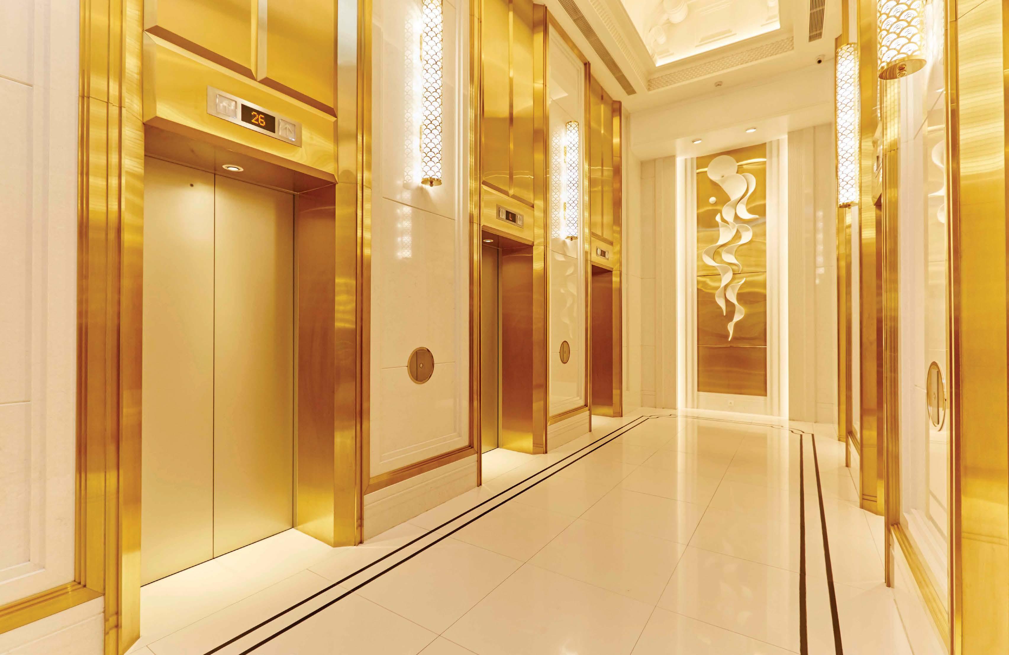 The overall atmosphere of the interior design is consistent with the theme of the development. The lobby is decked with nautical sculptures and other artworks reminiscent of sailboats. The sun’s reflection on water also inspired the naval lighting, wall cladding, and ceiling design in hues of shimmery gold.