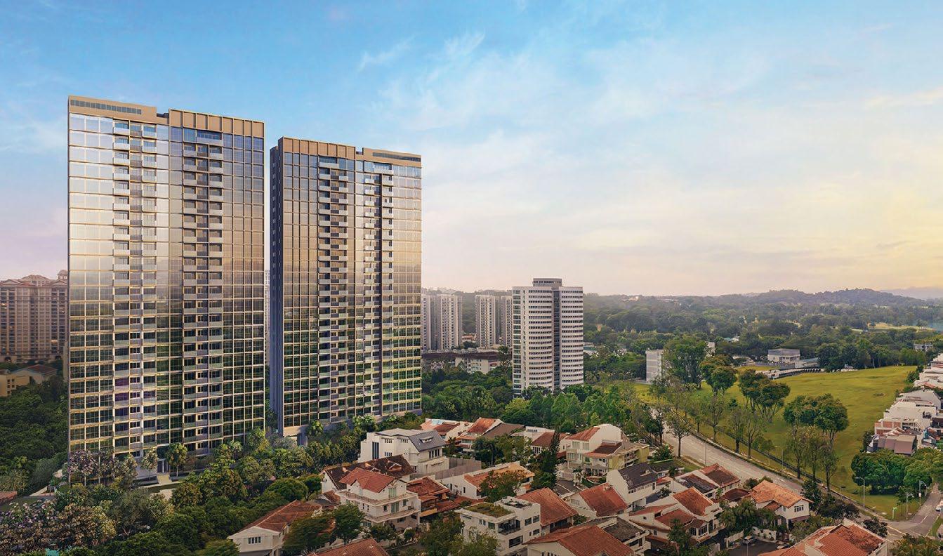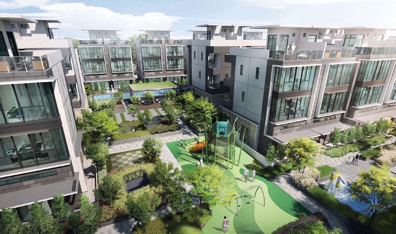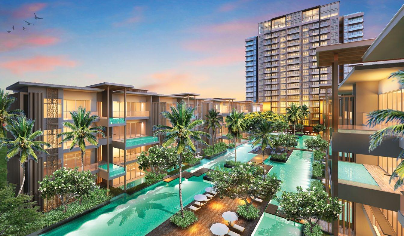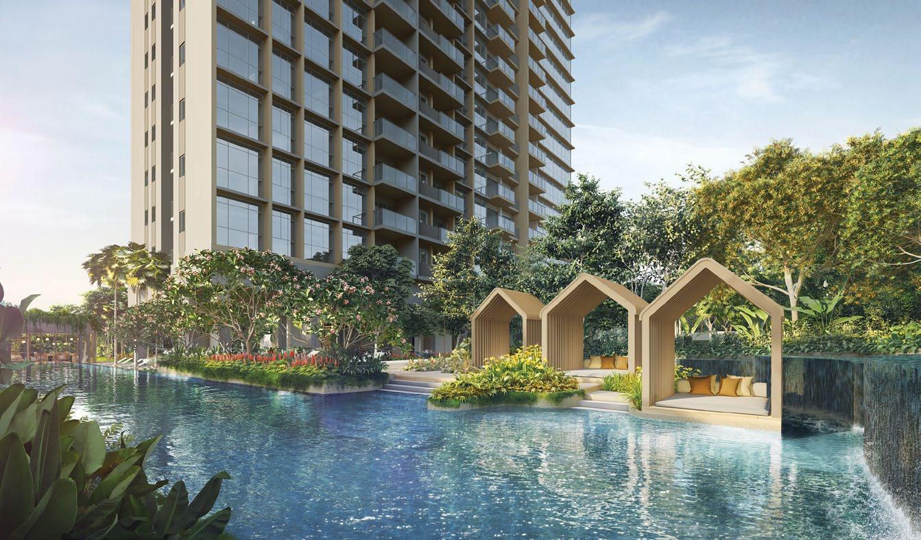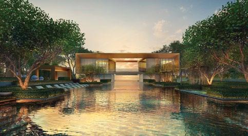 rejuvenate. More than 60% of the site is dedicated to landscaping and facilities, making the development suitable for young families. The development is home to three landscaped zones, encompassing natureinspired facilities coupled with organic geometries. These facilities include the main clubhouse, a 50m infinity lap pool, spa pool, outdoor fitness stations, a tennis court, gymnasium, yoga lawn, and gourmet dining pavilions.