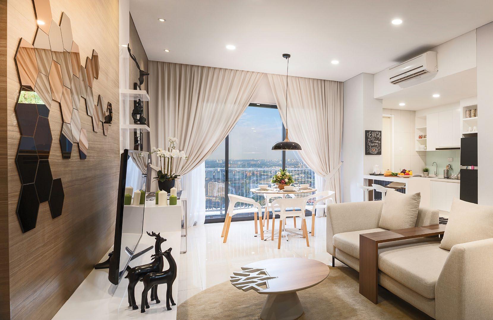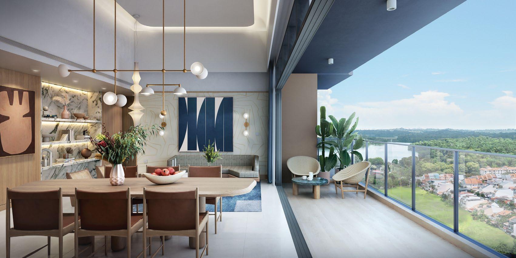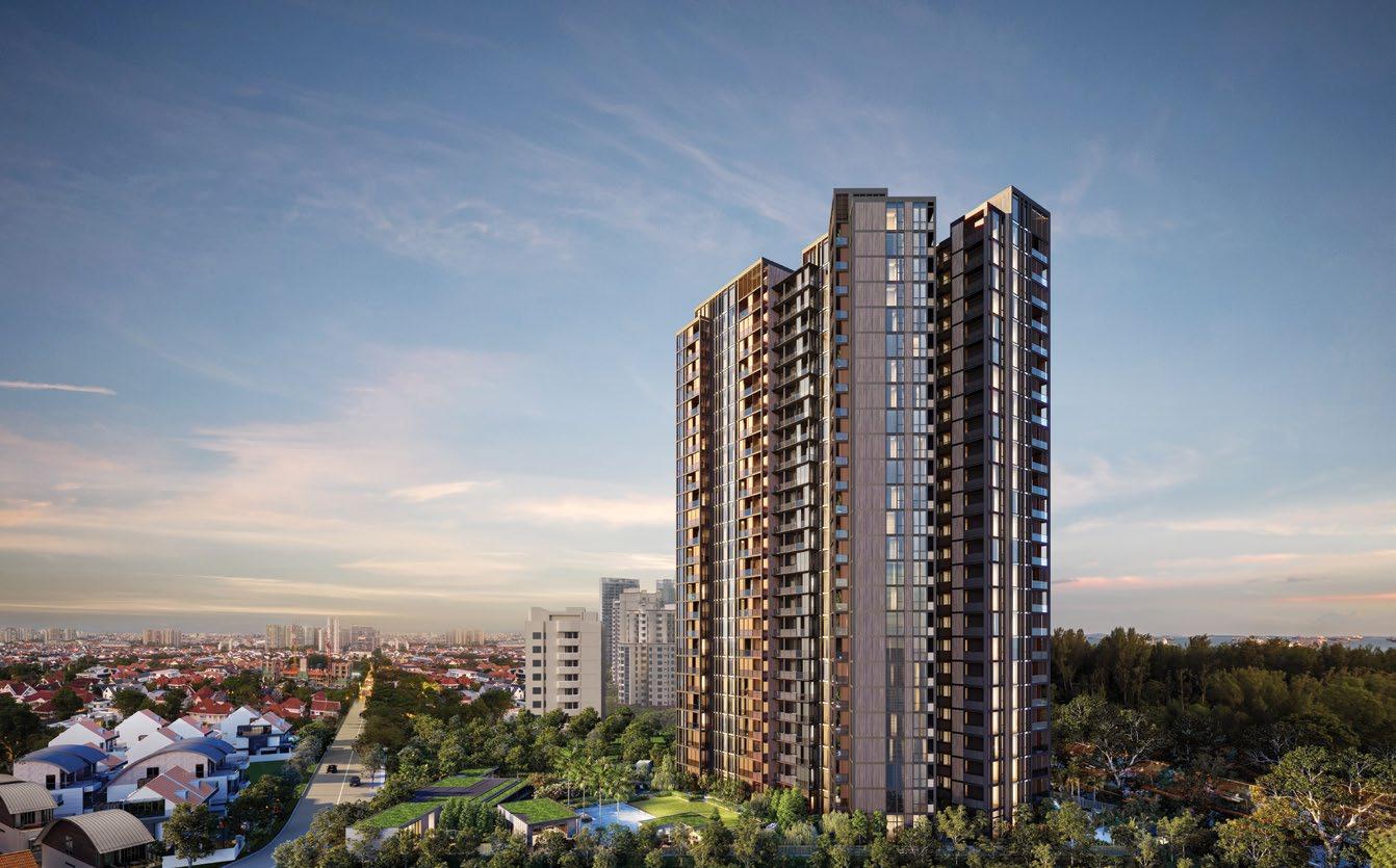 rejuvenate. More than 60% of the site is dedicated to landscaping and facilities, making the development suitable for young families. The development is home to three landscaped zones, encompassing natureinspired facilities coupled with organic geometries. These facilities include the main clubhouse, a 50m infinity lap pool, spa pool, outdoor fitness stations, a tennis court, gymnasium, yoga lawn, and gourmet dining pavilions.