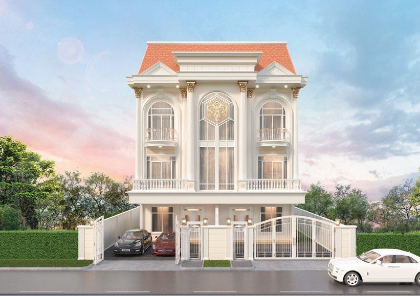 The glass façade of each unit features a sleek fin frame, blending classic and modern concepts. The façade also serves to showcase six-metre-wide internal spaces. The 4.59-metre-high ceilings with loft, located on the first storey, further highlight this spaciousness. Meanwhile, the roof terrace provides additional space for semi-outdoor family activities.
