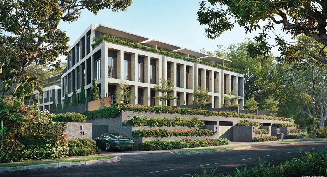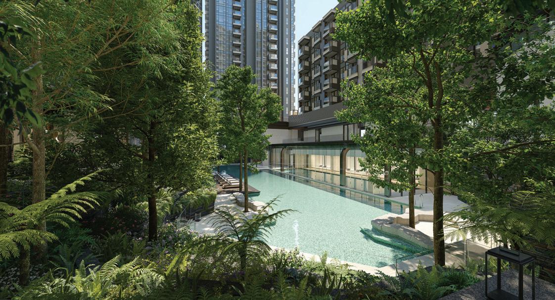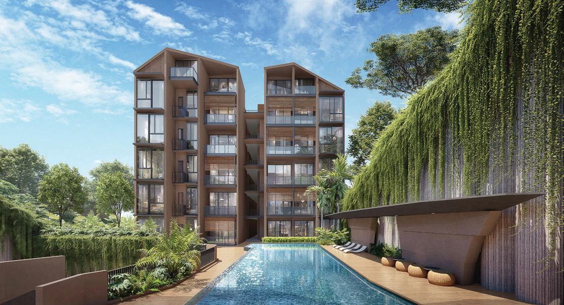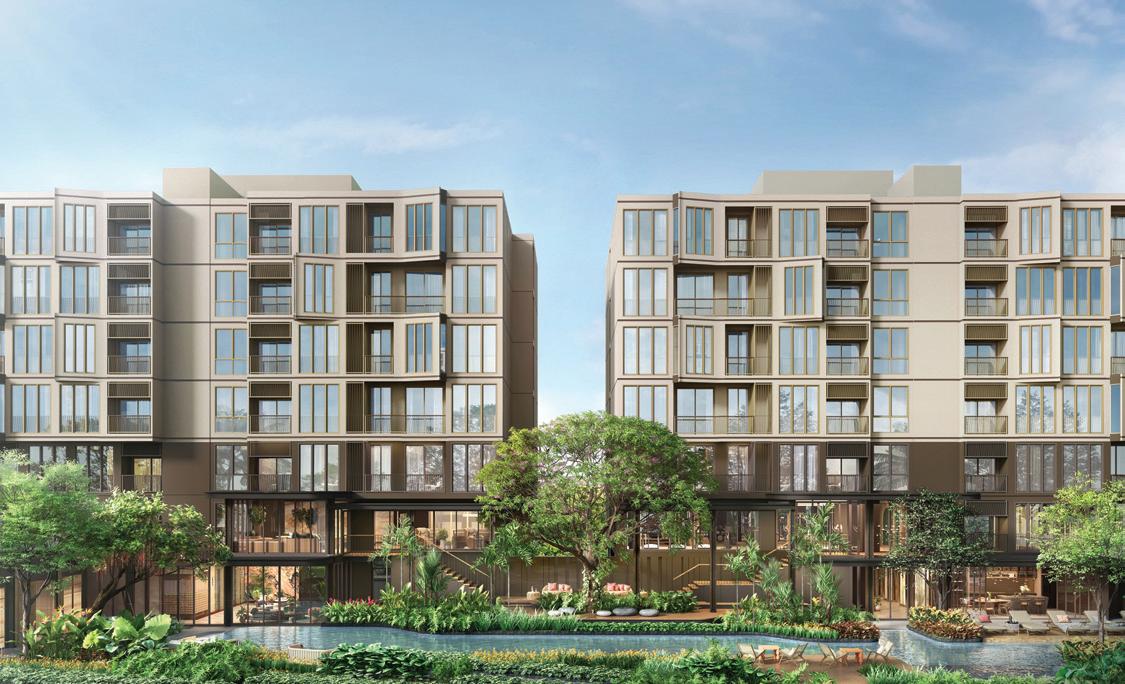 This mid-rise development includes penthouses with private pools, high ceilings, floor-to-ceiling glass, green views, and an onsen with UV and Nano Ozone technology.