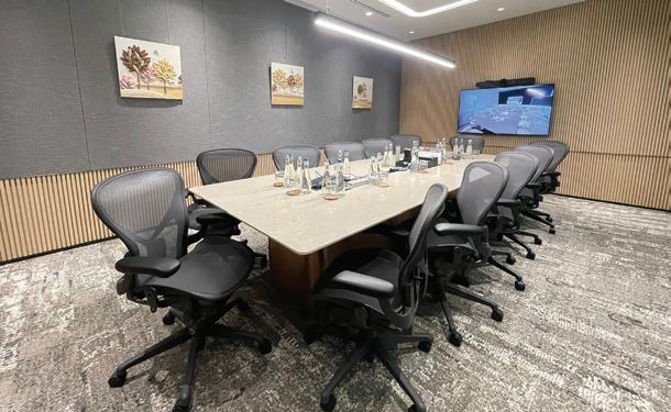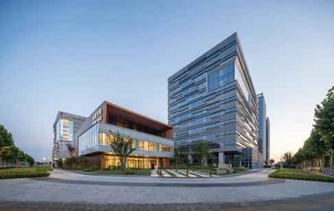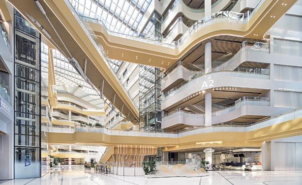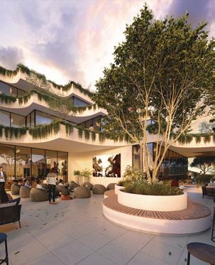 Woven into these LEEDcertified, energy-efficient corporate spaces are dining options and fitness features, plus gardens and landscaped balconies at various levels.
