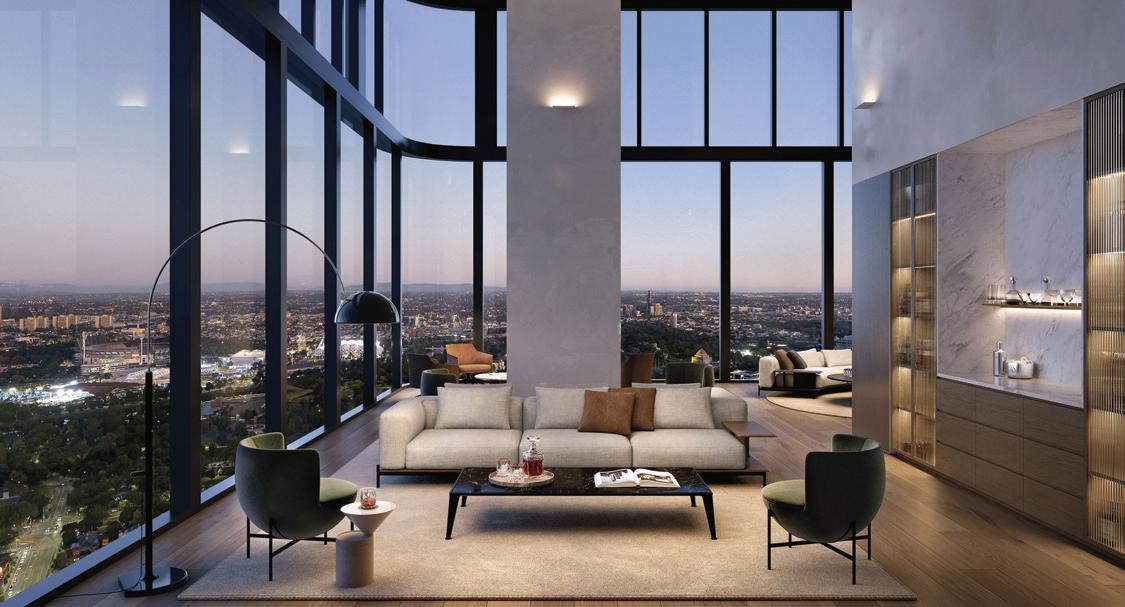 Embracing a European-style aesthetic, these exclusive apartments boast multiple bedrooms, plus duplex and penthouse options, and take in great lake views.