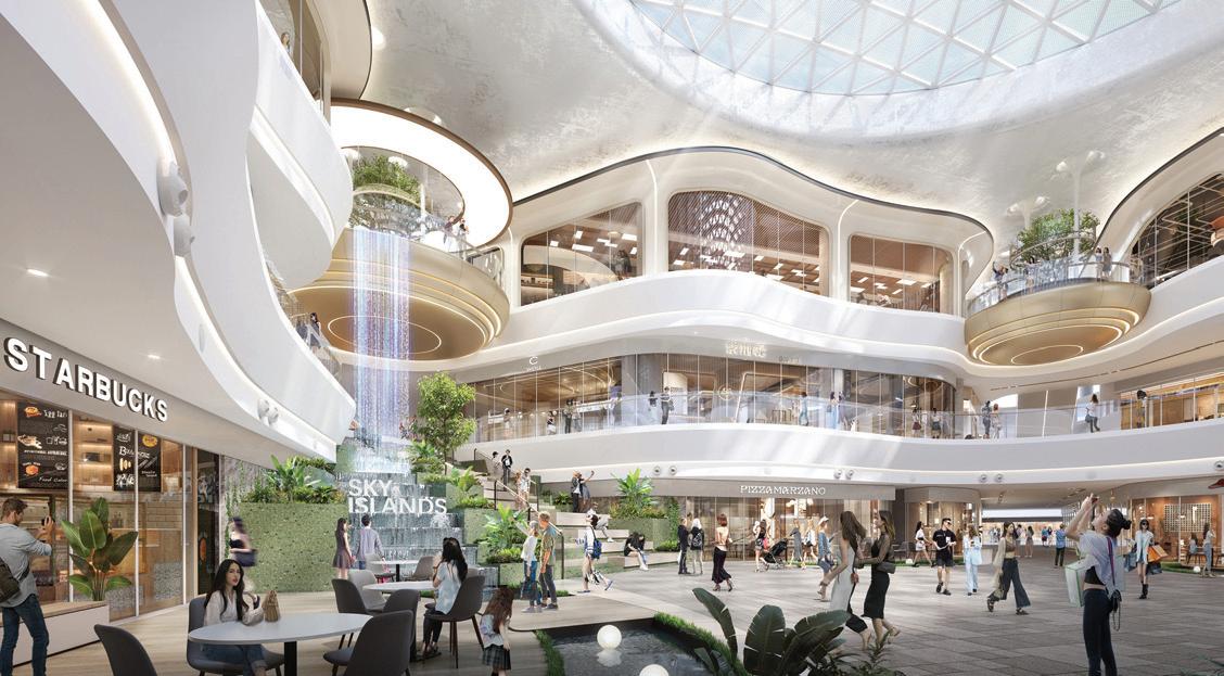 The project features a floating canopy linking retail and commercial buildings, enhanced by a central courtyard and jogging tracks. Highly Commended: Best Retail Development