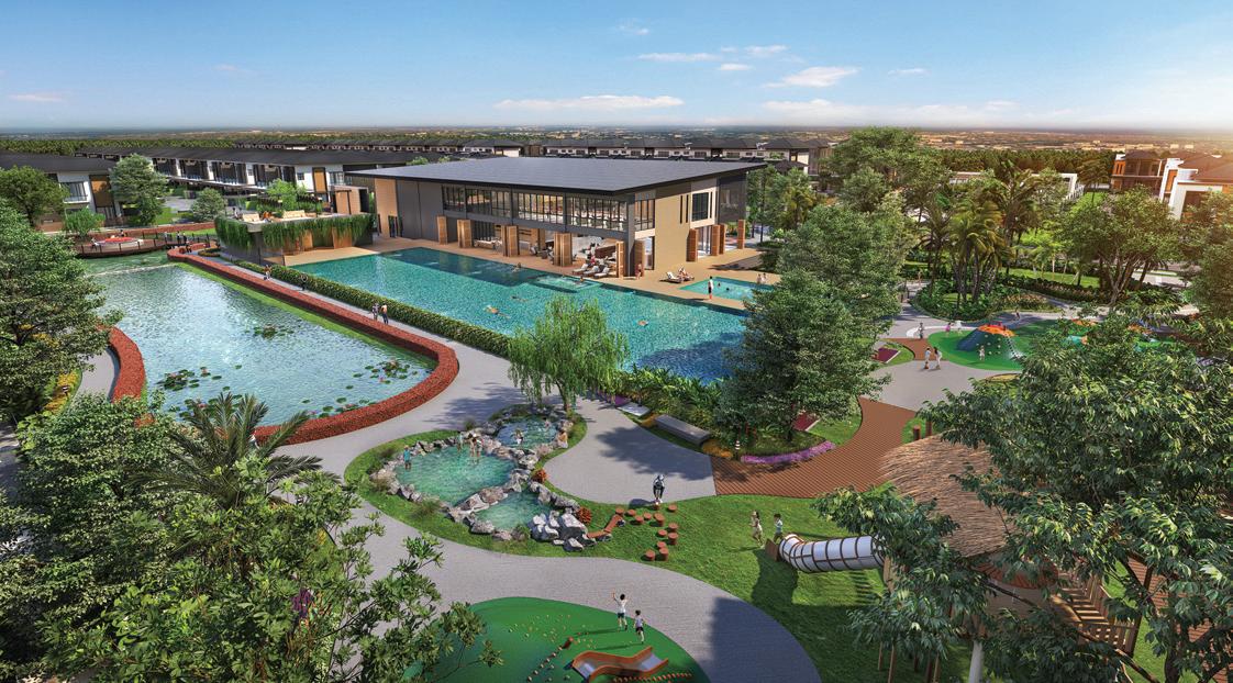 These modern residences with nature-inspired designs include detached villas and terraced homes, set amid themed gardens, outdoor fitness areas, and a five-level clubhouse.