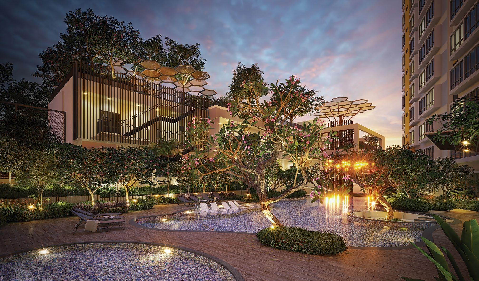 Inspired by Singapore’s iconic black-andwhite bungalows, Lentor Mansion combines a luxurious mansion-inspired lifestyle with modern conveniences amid a verdant landscape.