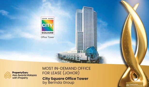 Meanwhile, City Square Office Tower by Berinda Group has been recognised as the Most In-Demand Office For Lease in Johor. Commercial property seekers appreciate the development’s impressive 24-hour security system and abundant car parking spaces. City Square Office Tower is also easily accessible from the Johor Bahru city centre via Jalan Tebrau and Jalan Wong Ah Fook, turning the office commute into a five- to 10-minute journey.