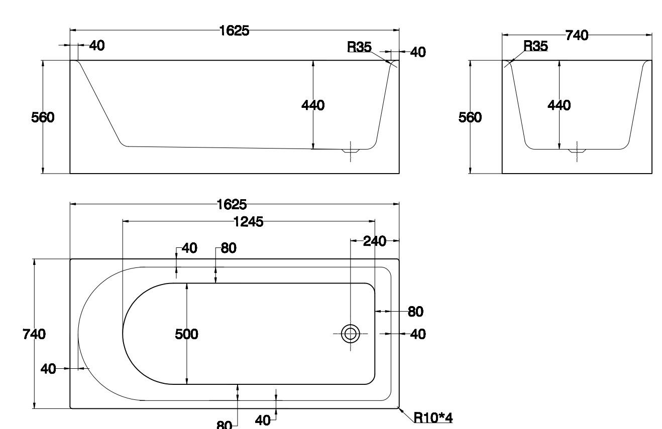 QUBE 1625MM SOFT EDGE BACK TO WALL FREESTANDING BATH