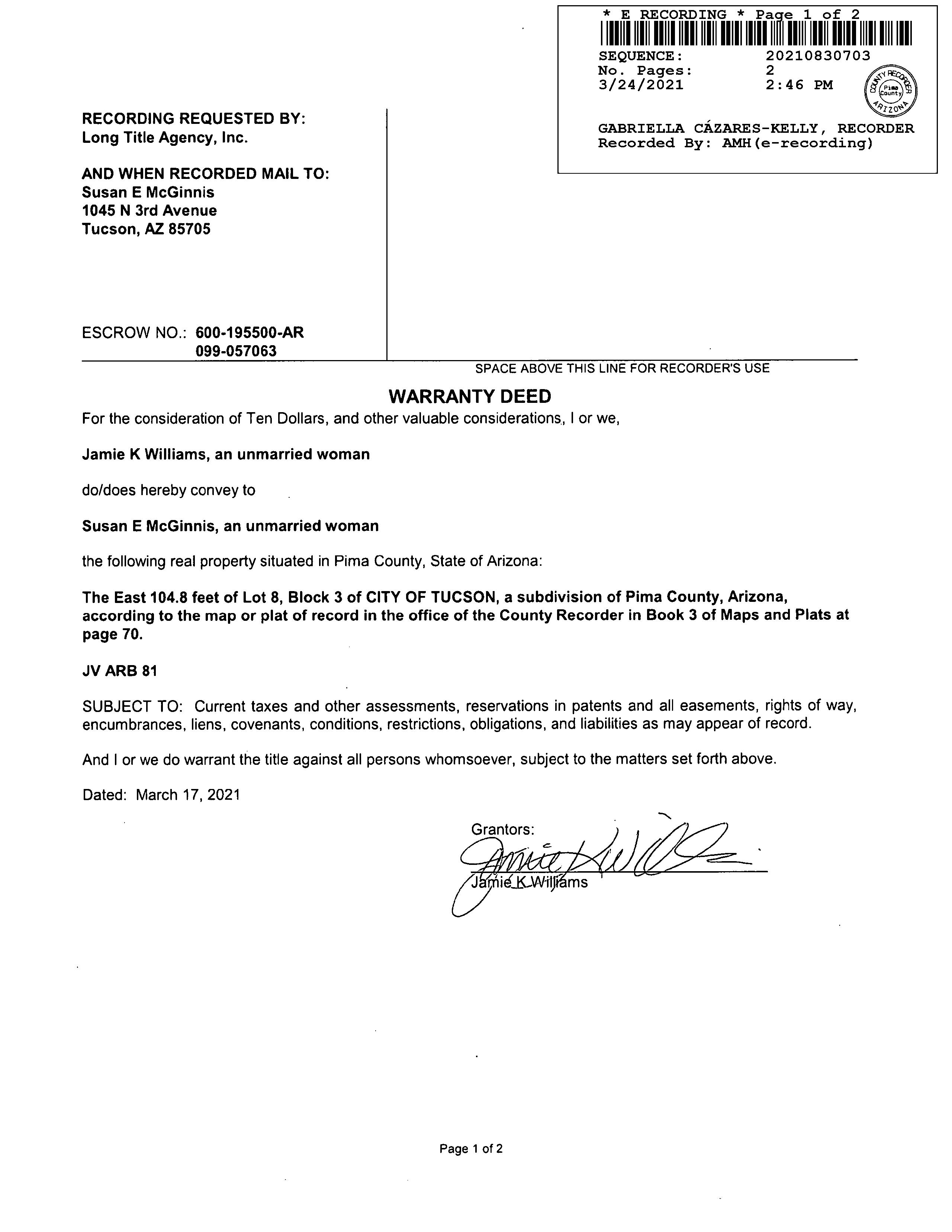 OWNER: MCGINNIS SUSAN AFFIDAVIT 2021 830703 03/24/2021