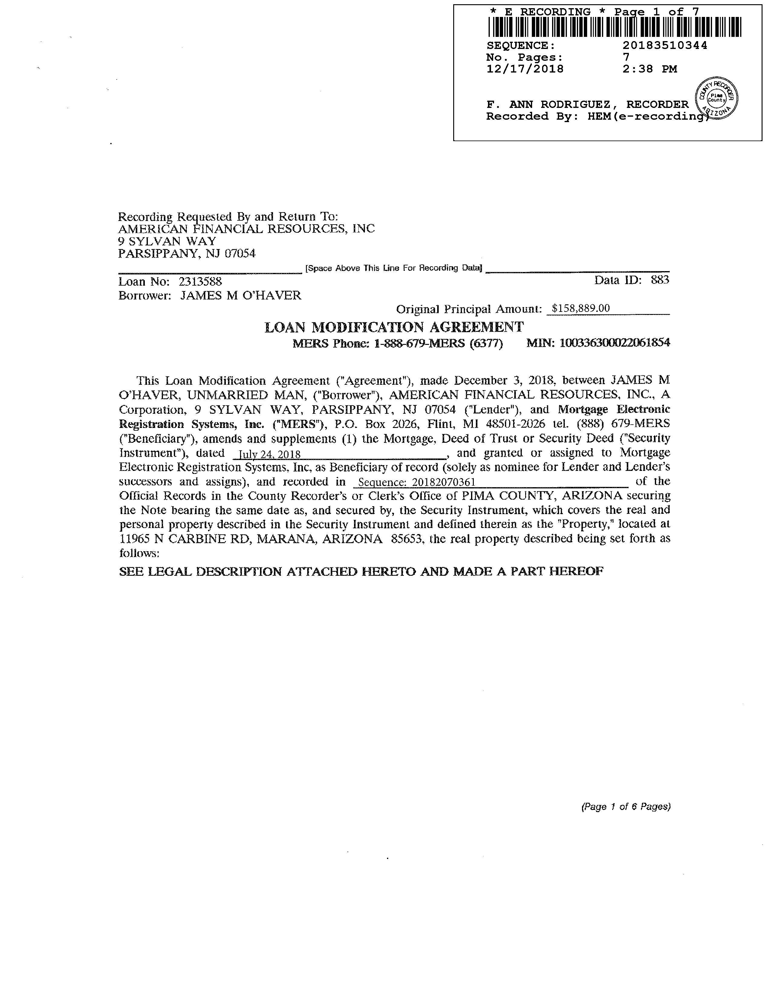 OWNER: O HAVER JAMES M AFFIDAVIT 2018 2070360 07/26/2018