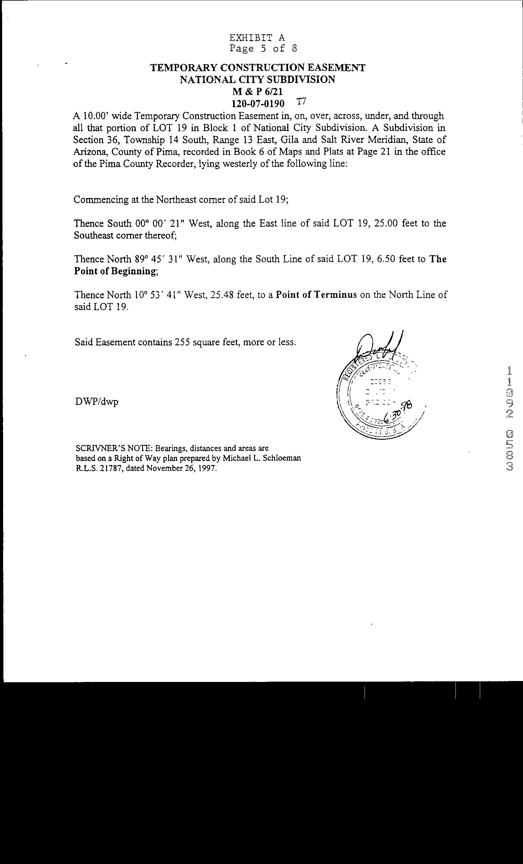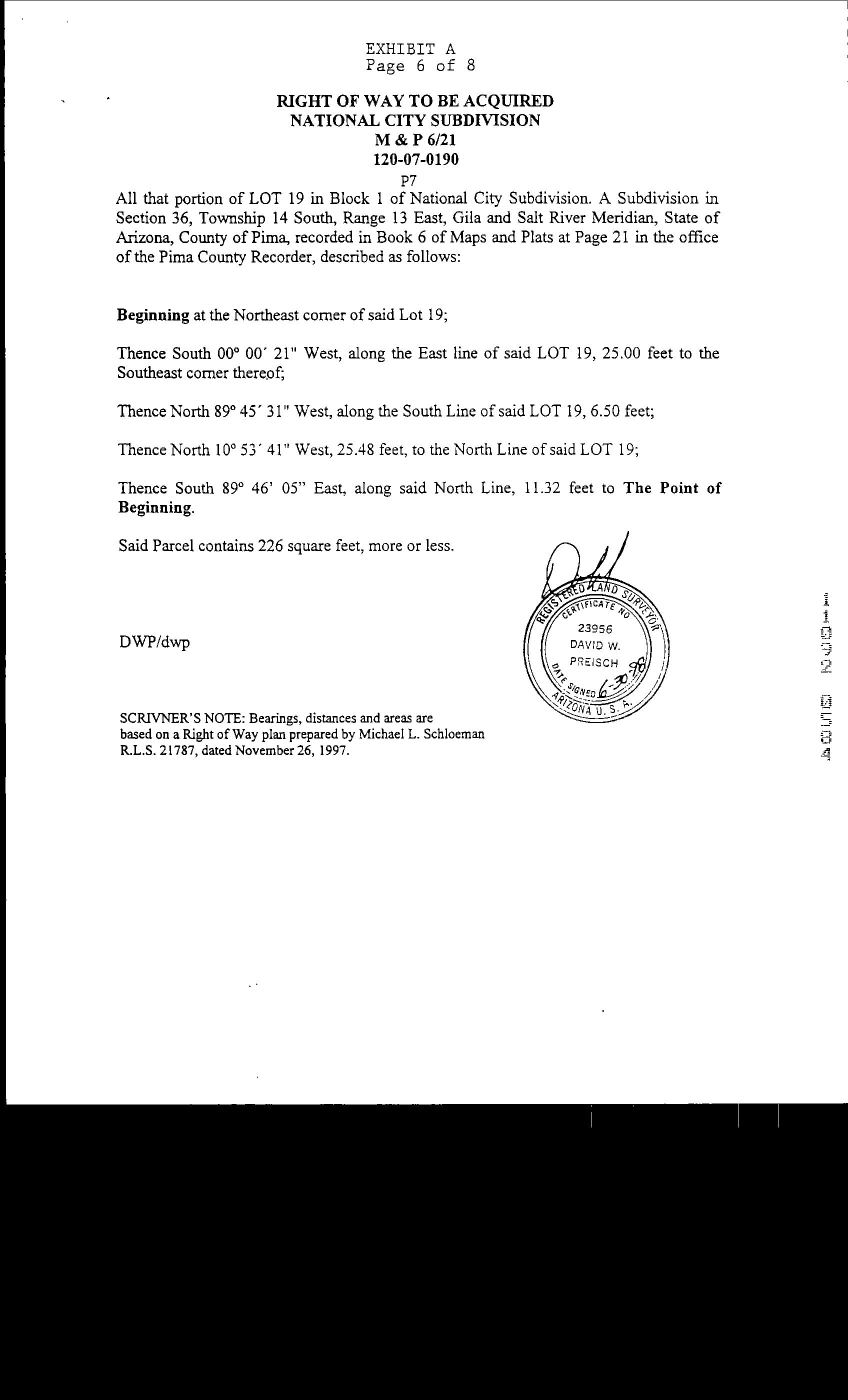 LegalDescriptionDetails LotNumber:19Block:1District:SOUTHTUCSONCity,Municipality,Township:FAIRGROUNDSSubdivisionName:NATIONALCITYSec/Twn/Rng/Mer: SEC36TWN14SRNG13EBriefDescription:NATIONALCITYLOT19BLK1EXCRDRecorder'sMapRef:PLAT:21