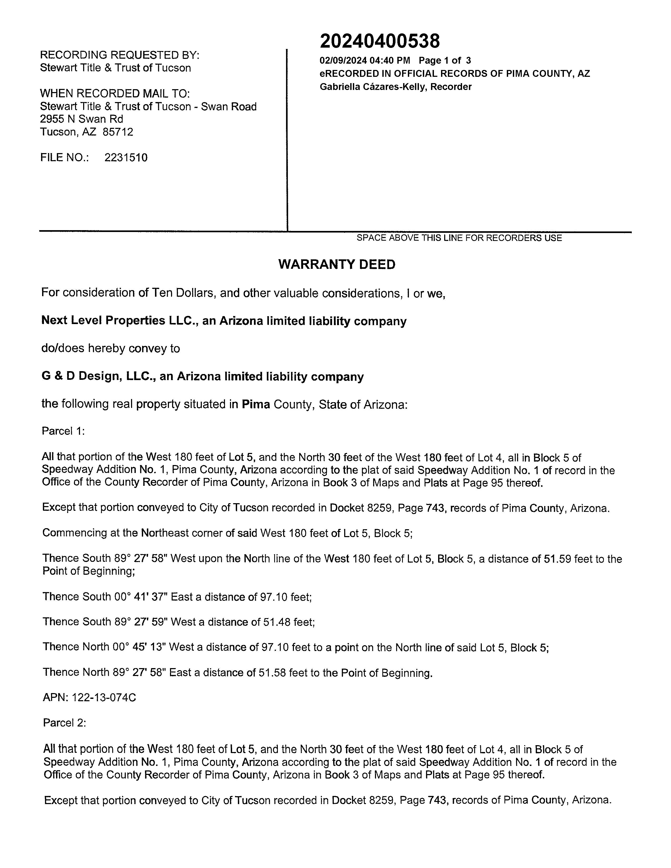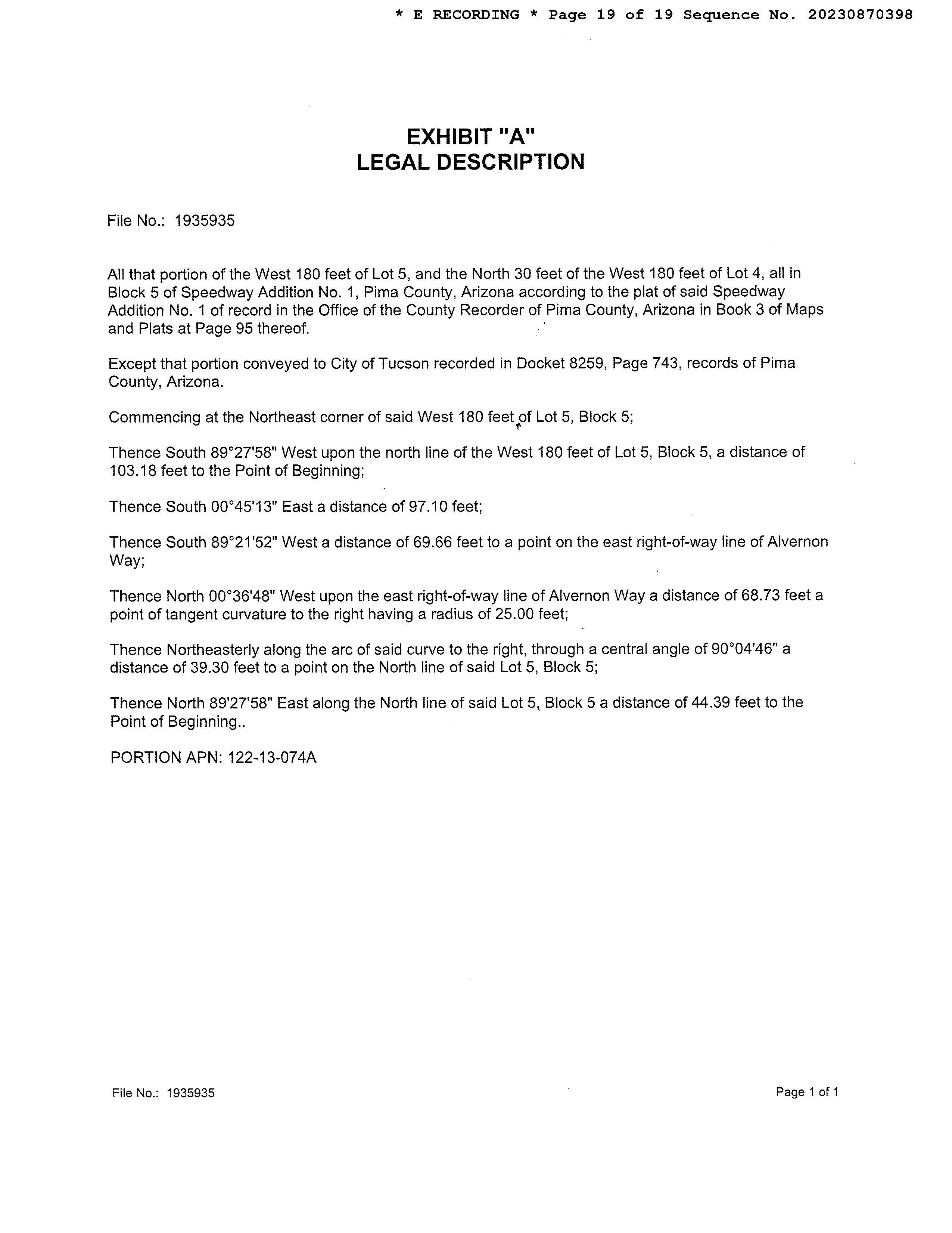 7095SCAMINOLIBERTAD,TUCSON,AZ85746-8270 ParcelNumber 122-13-074E