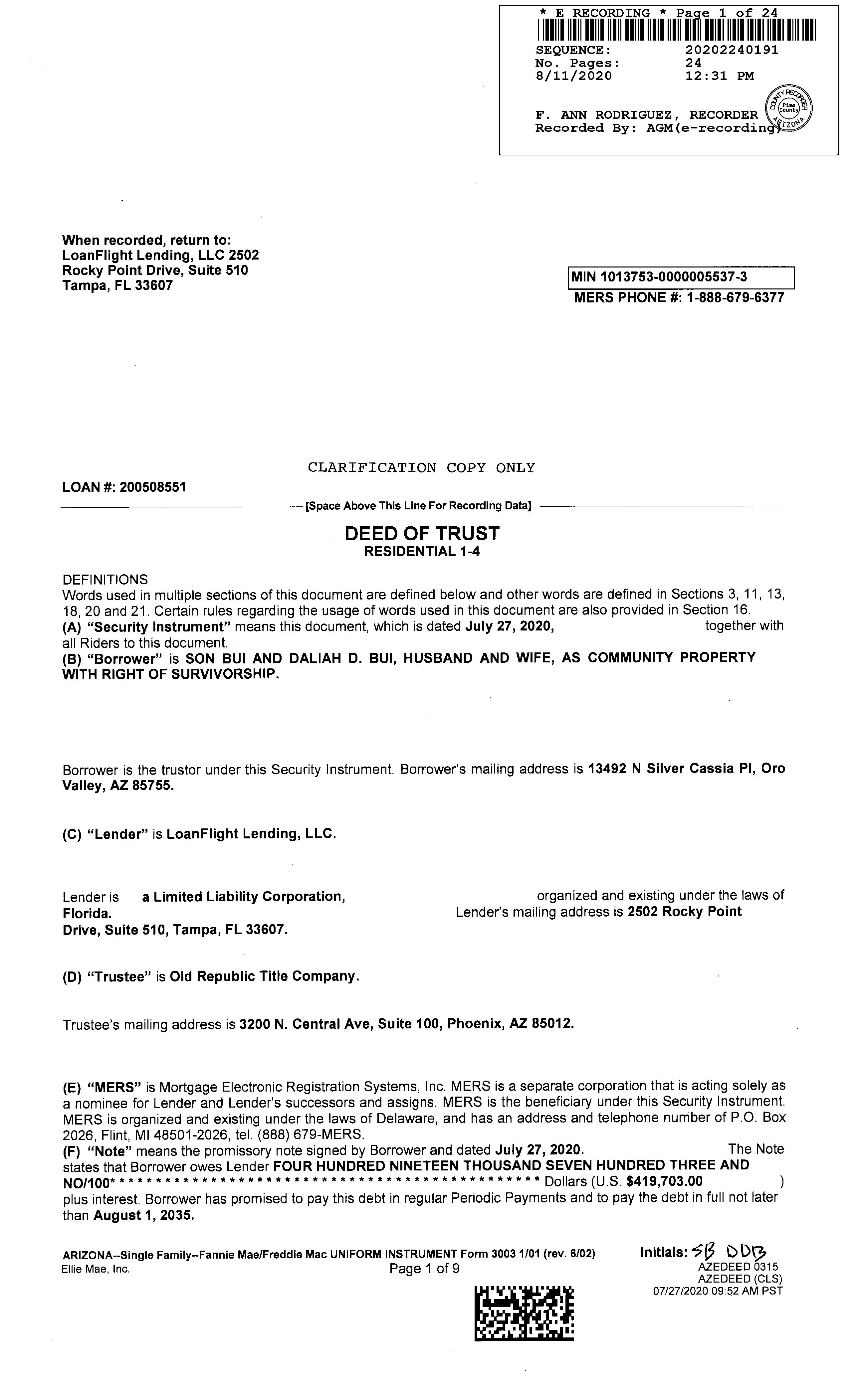 OWNER: BUI SON/DALIAH D AFFIDAVIT 2016 3020508 10/28/2016