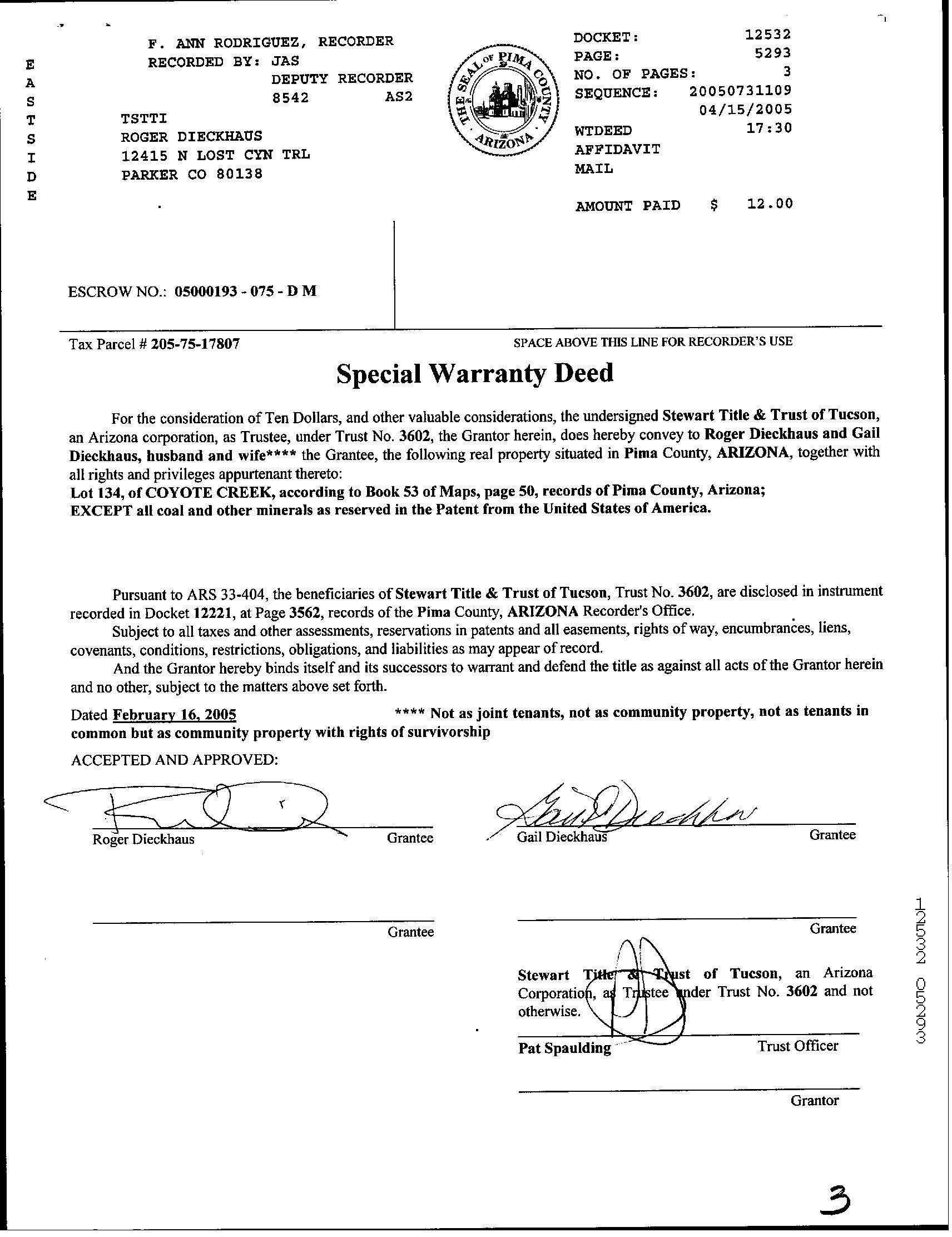 OWNER: DIECKHAUS ROGER W & GAIL D CP/RS