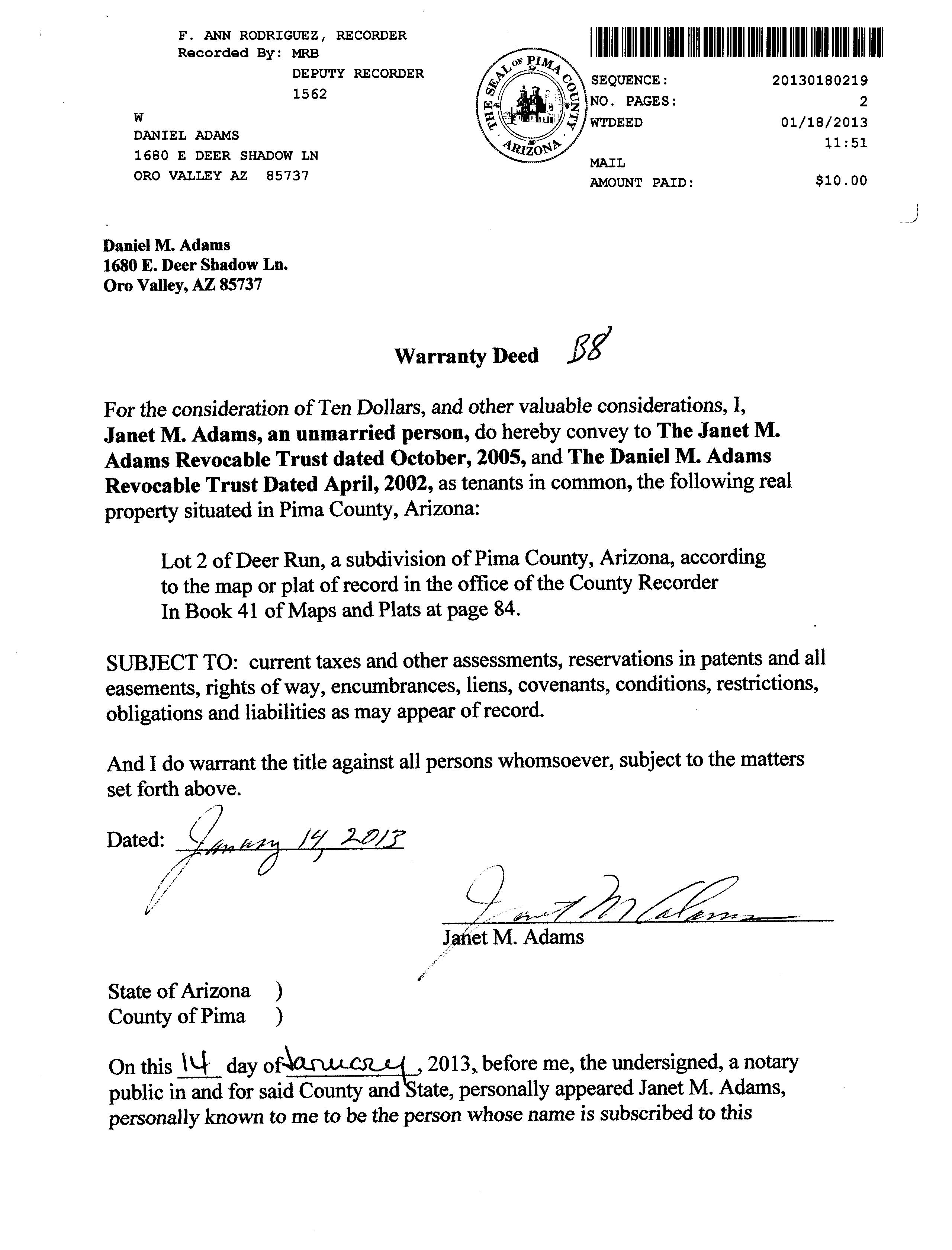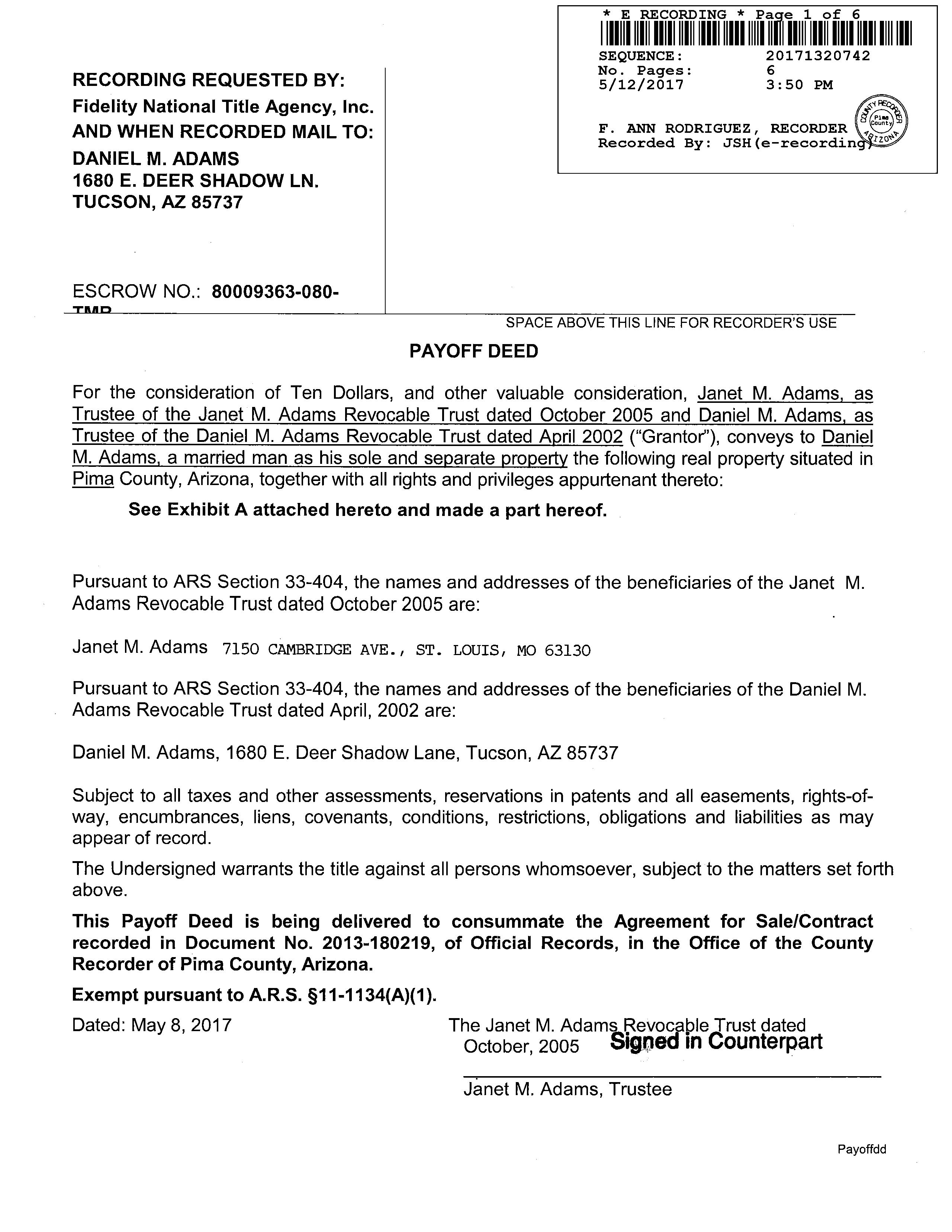 MailingAddress 1680EDEERSHADOWLN,OROVALLEY,AZ85737-6649