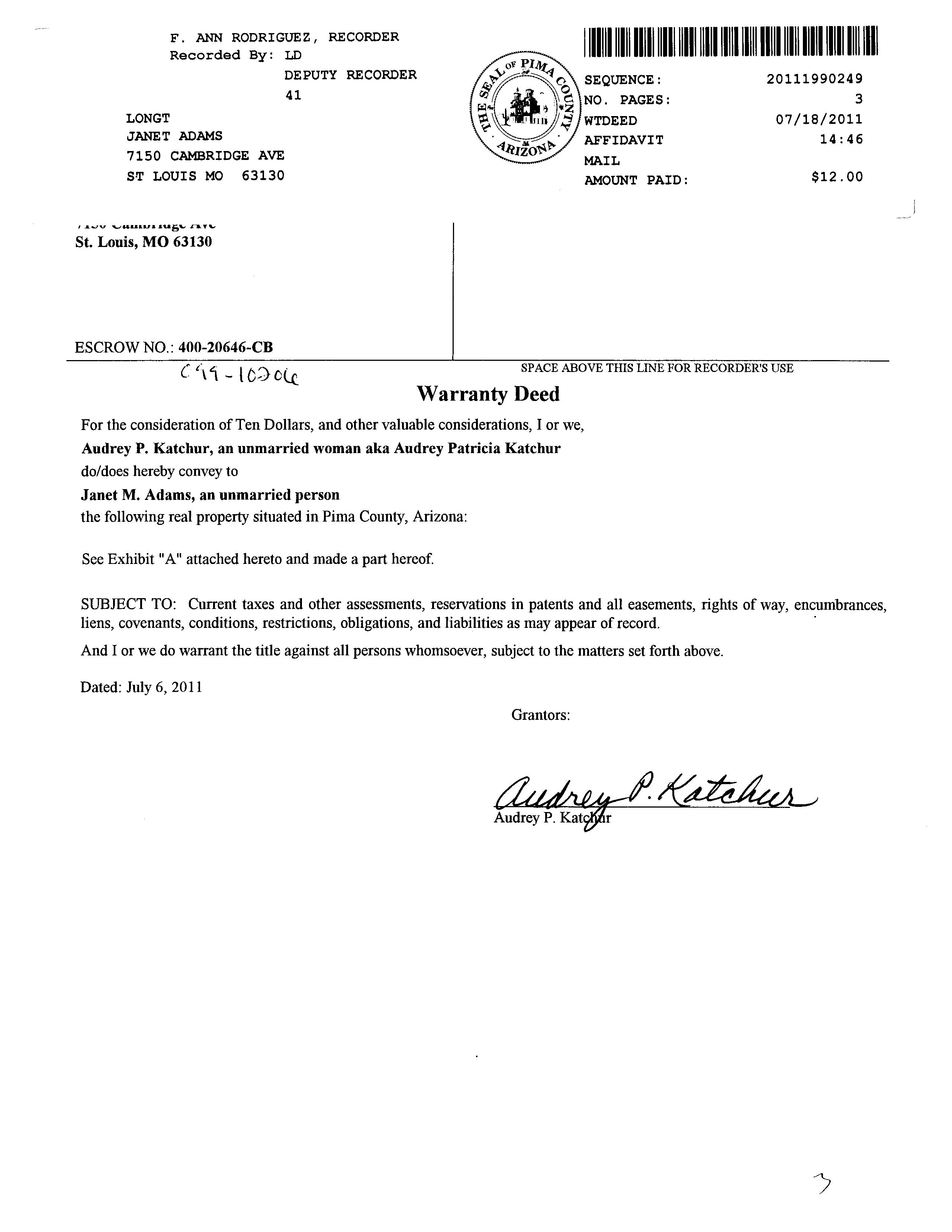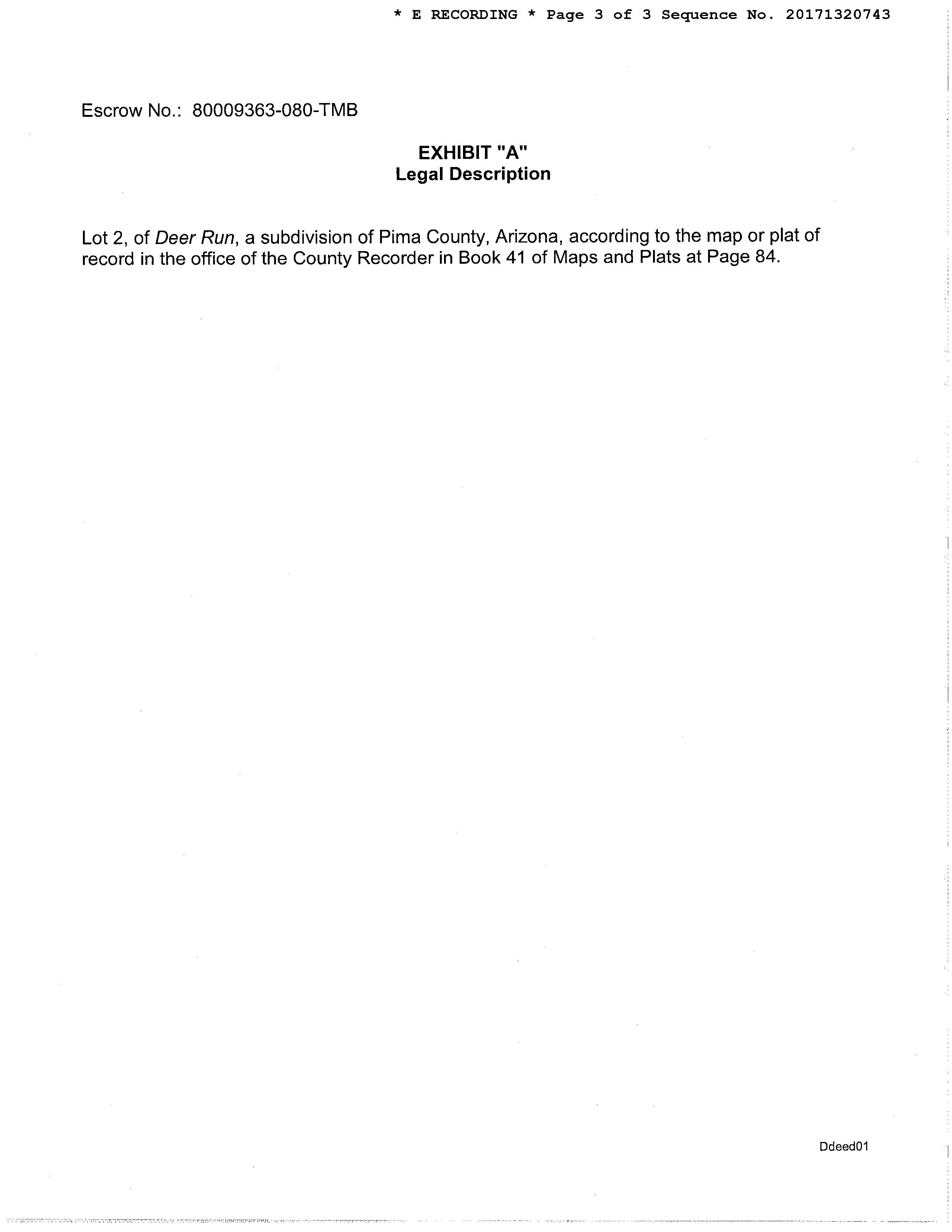 LegalDescriptionDetails LotNumber:2District:OROVALLEYCity,Municipality,Township:CORONADONF WESTSubdivisionName:DEERRUNSec/Twn/Rng/Mer:SEC07 TWN12SRNG14EBriefDescription:DEERRUNLOT2Recorder'sMapRef:PLAT:84 CurrentOwnershipInformation