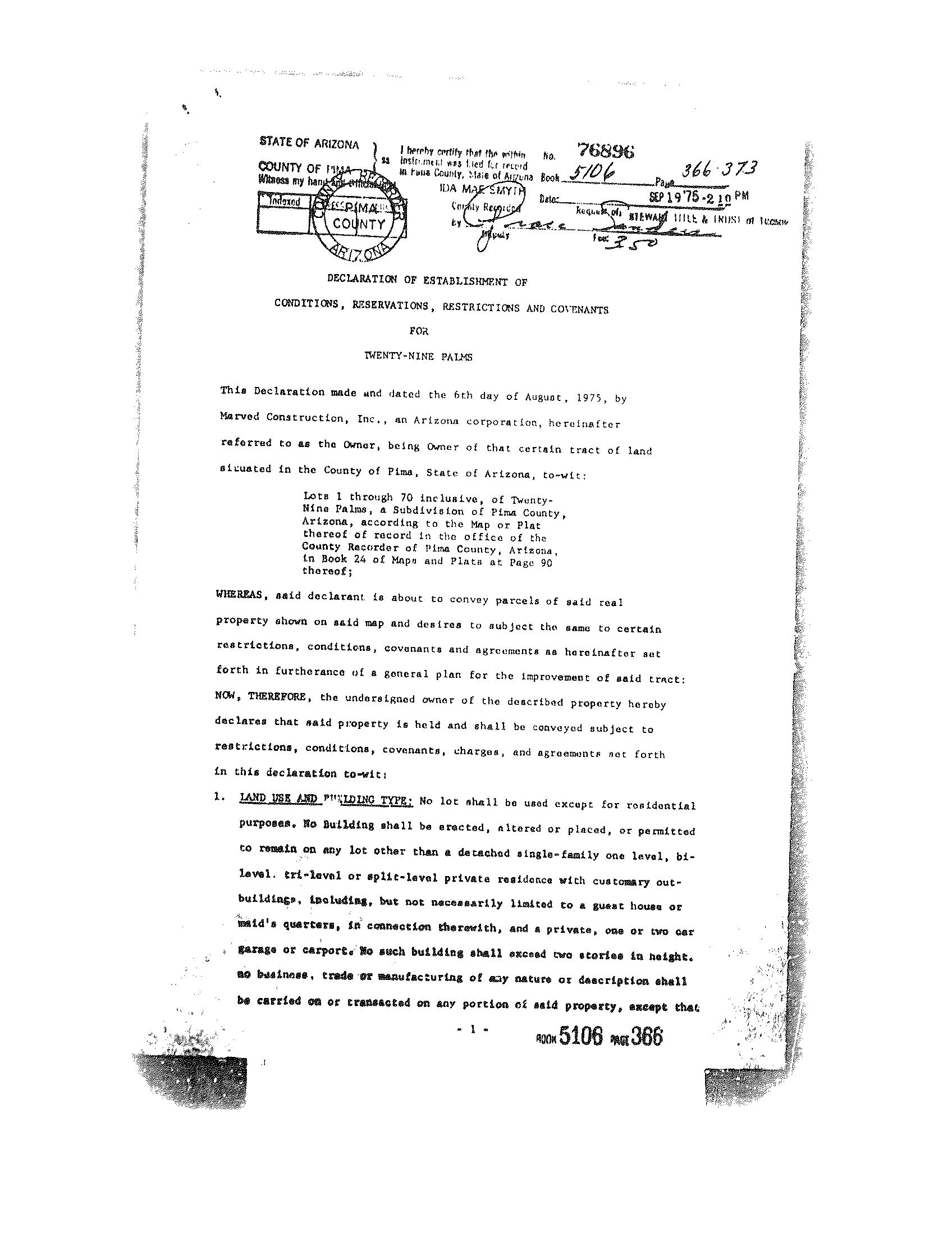 I hereby certify that the within instrument was liteil for record in Fima County, State of Arizona BooV. tOA MAb SMYlil Date: iitwAKT’muriawi^'o^ 7 V bunty Recorder ^ j xi.z