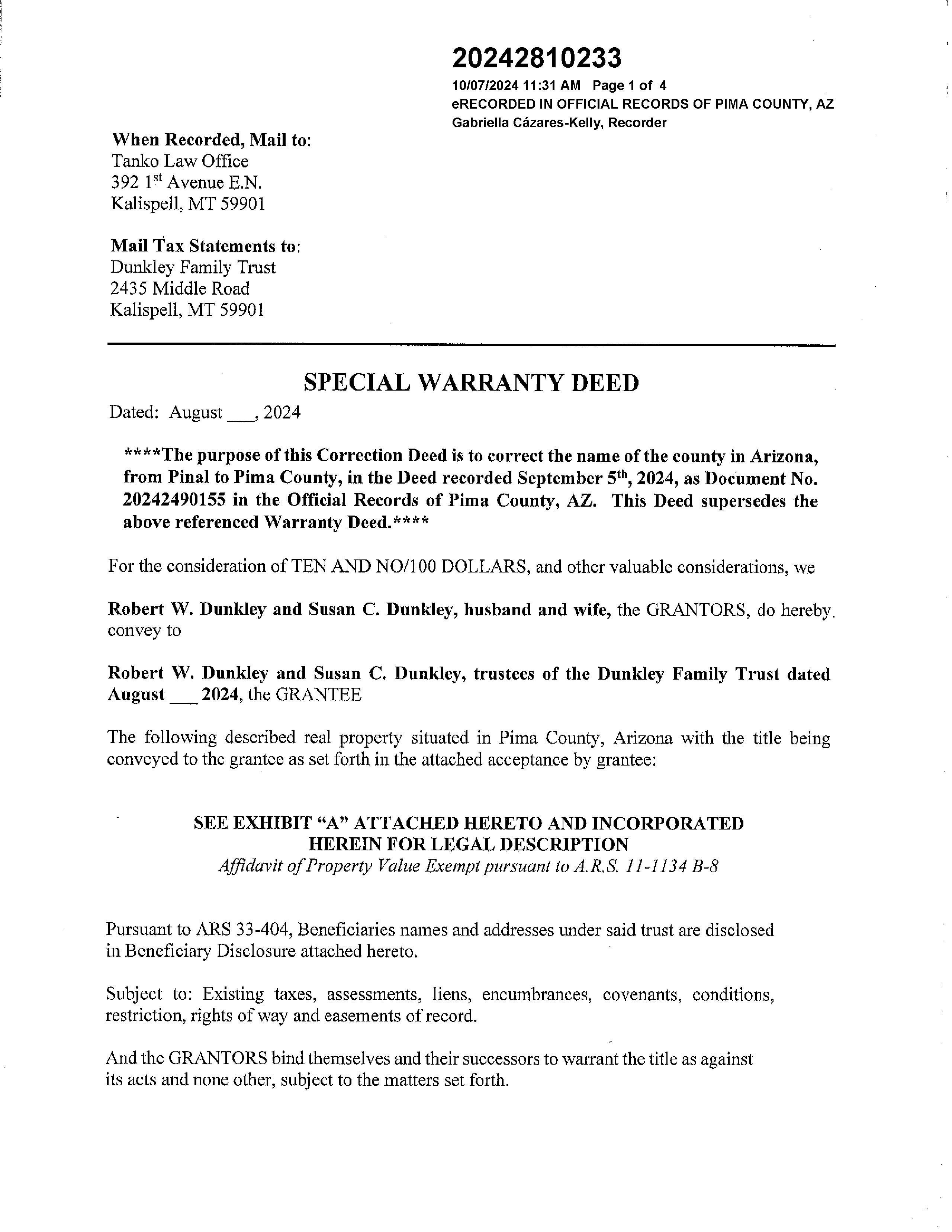 PrimaryOwnerName(s) DUNKLEY,ROBERTW;DUNKLEY,SUSANC