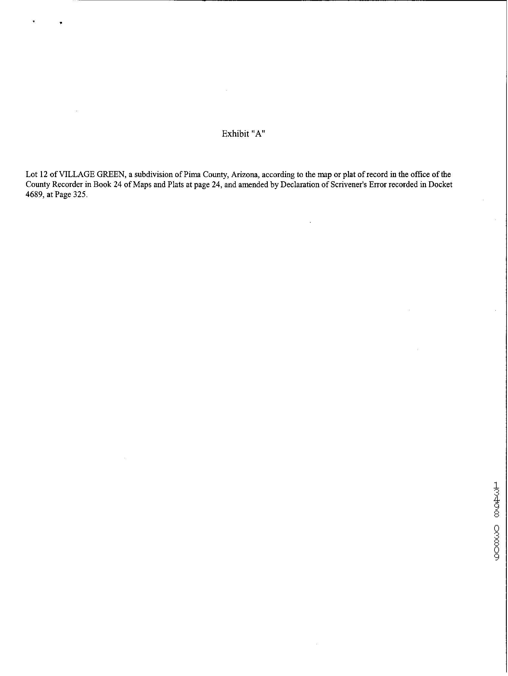 LegalDescriptionDetails LotNumber:12District:FAREASTCity,Municipality,Township:OLDSPANISHTRAILSubdivisionName:VILLAGEGREENSec/Twn/Rng/Mer:SEC23 TWN14SRNG15EBriefDescription:VILLAGEGREENLOT12Recorder'sMapRef:PLAT:24