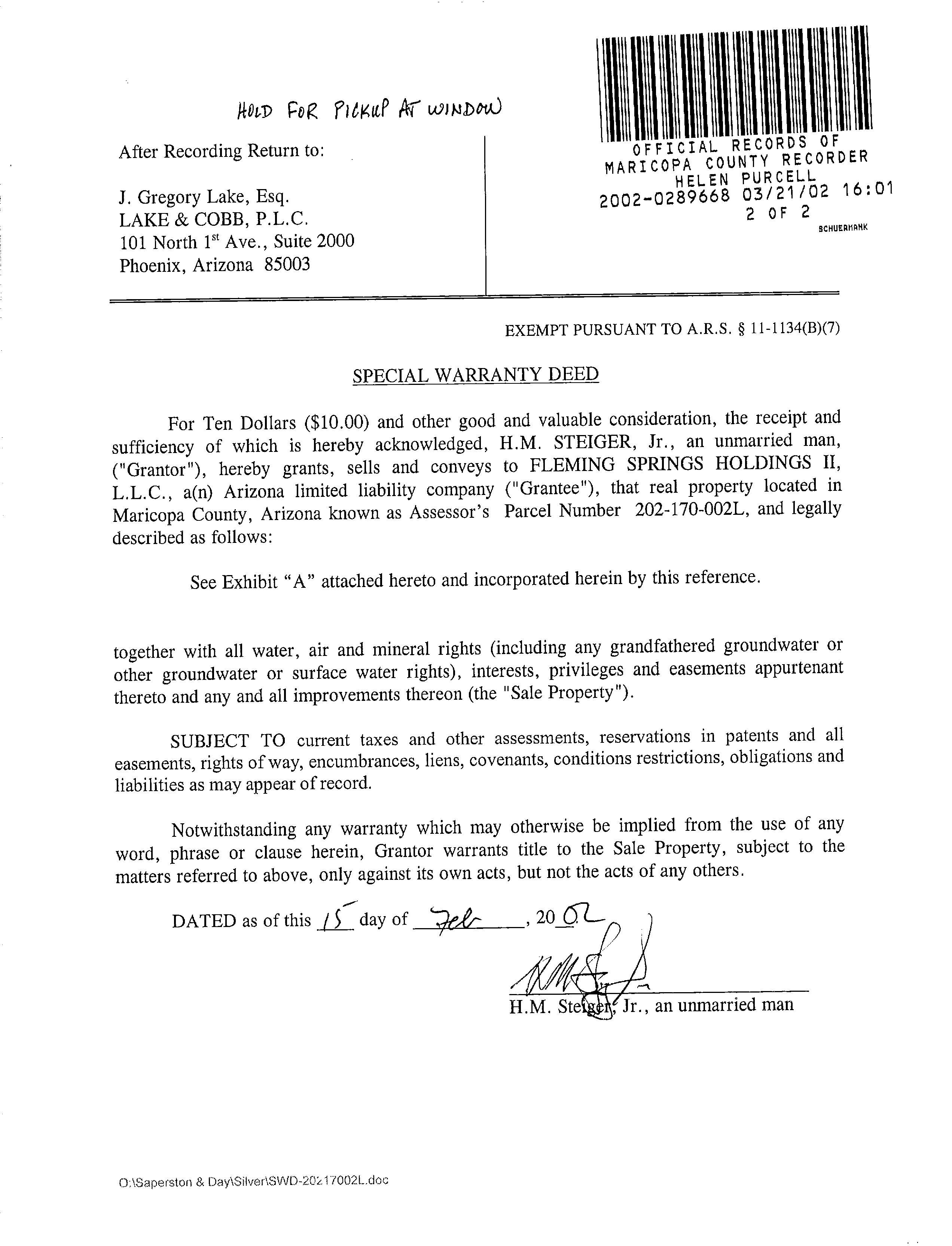 Owner Name: Fleming Springs Holdings Ii Llc / APN / Alternate APN: 202-17-002-L / Deed Type: Land Use: Residential Acreage Subdivision / Tract: / Lot Size: 200,576 Year Built / Eff: / Rec. Date / Price: / $ Living Area: # of units: Document #: Bedrooms: Pool: Total Tax Value: $130,800 Bath(F/H): /