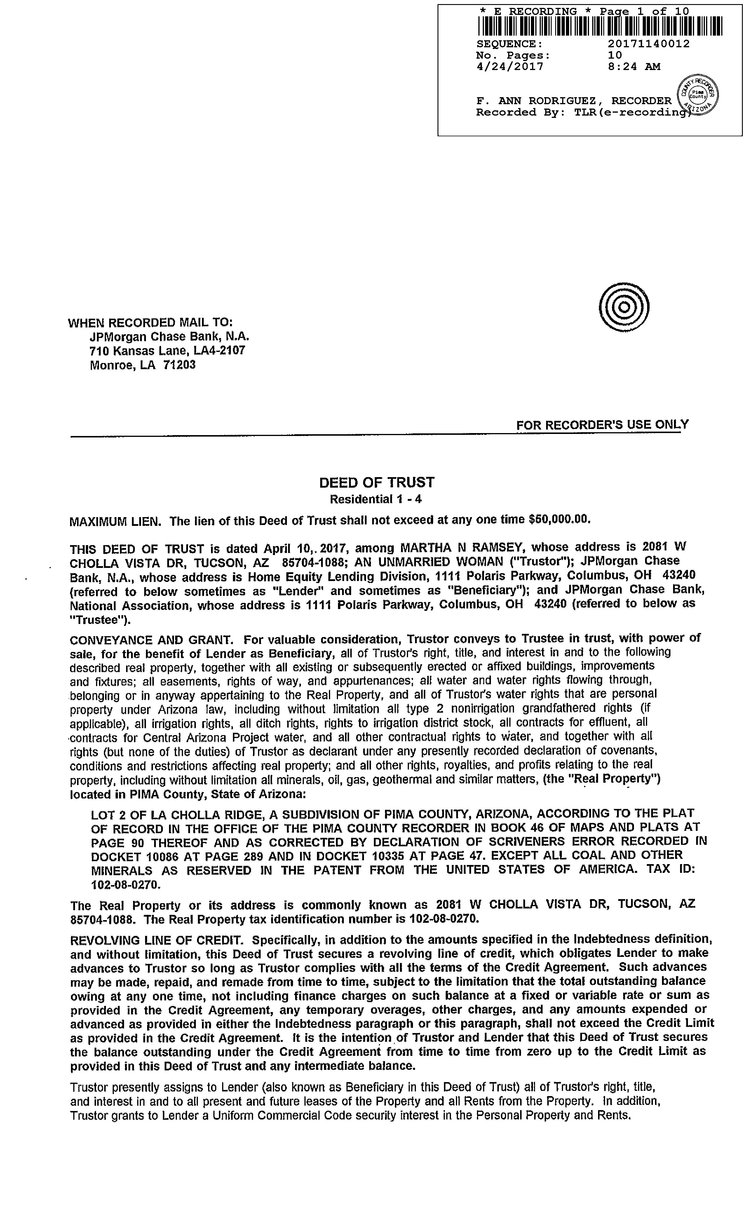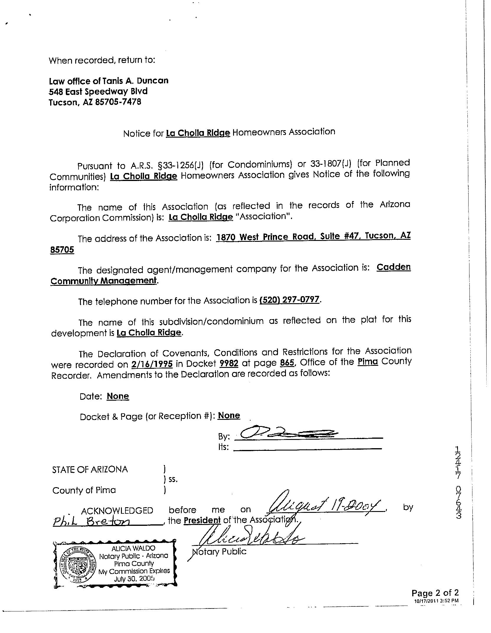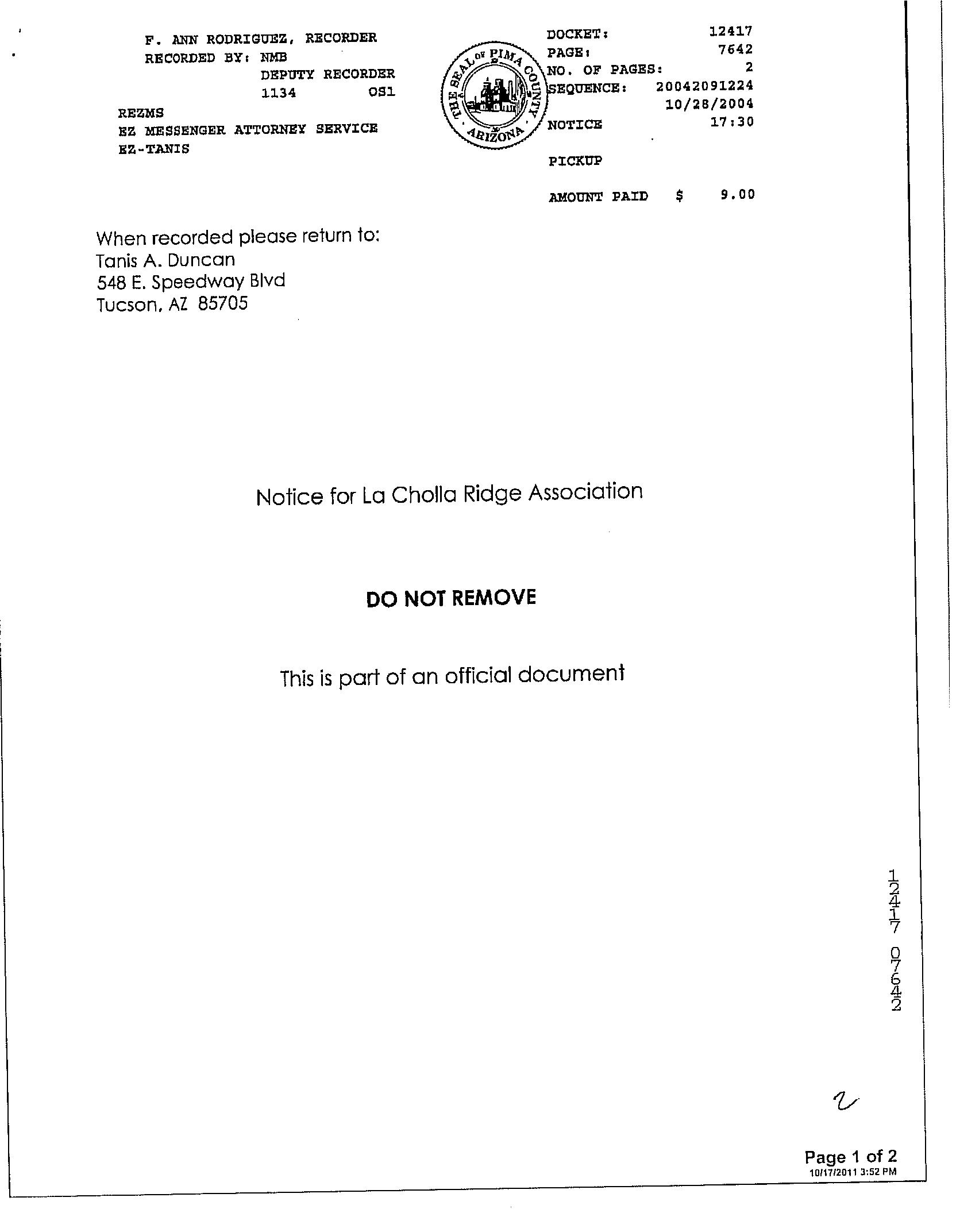Mailing Address : 2081 W Cholla Vista Dr, Tucson AZ 85704-1088 C007