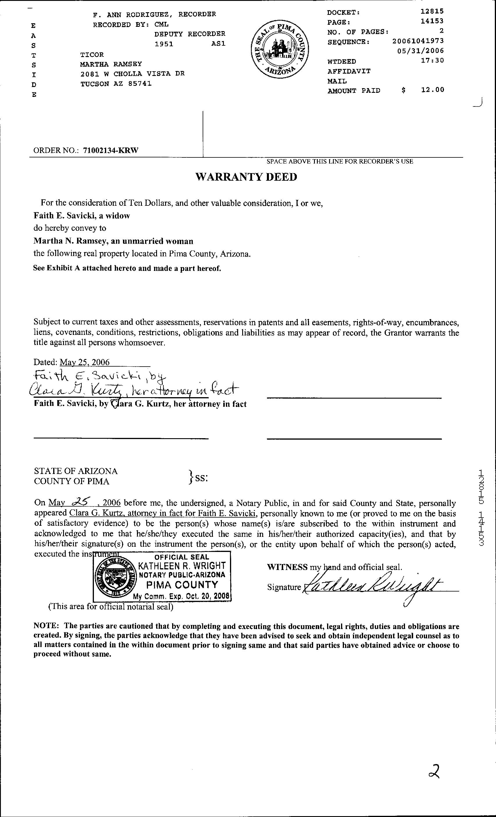 1281514153 WD SAVICKI FAITH E 12/26/1996