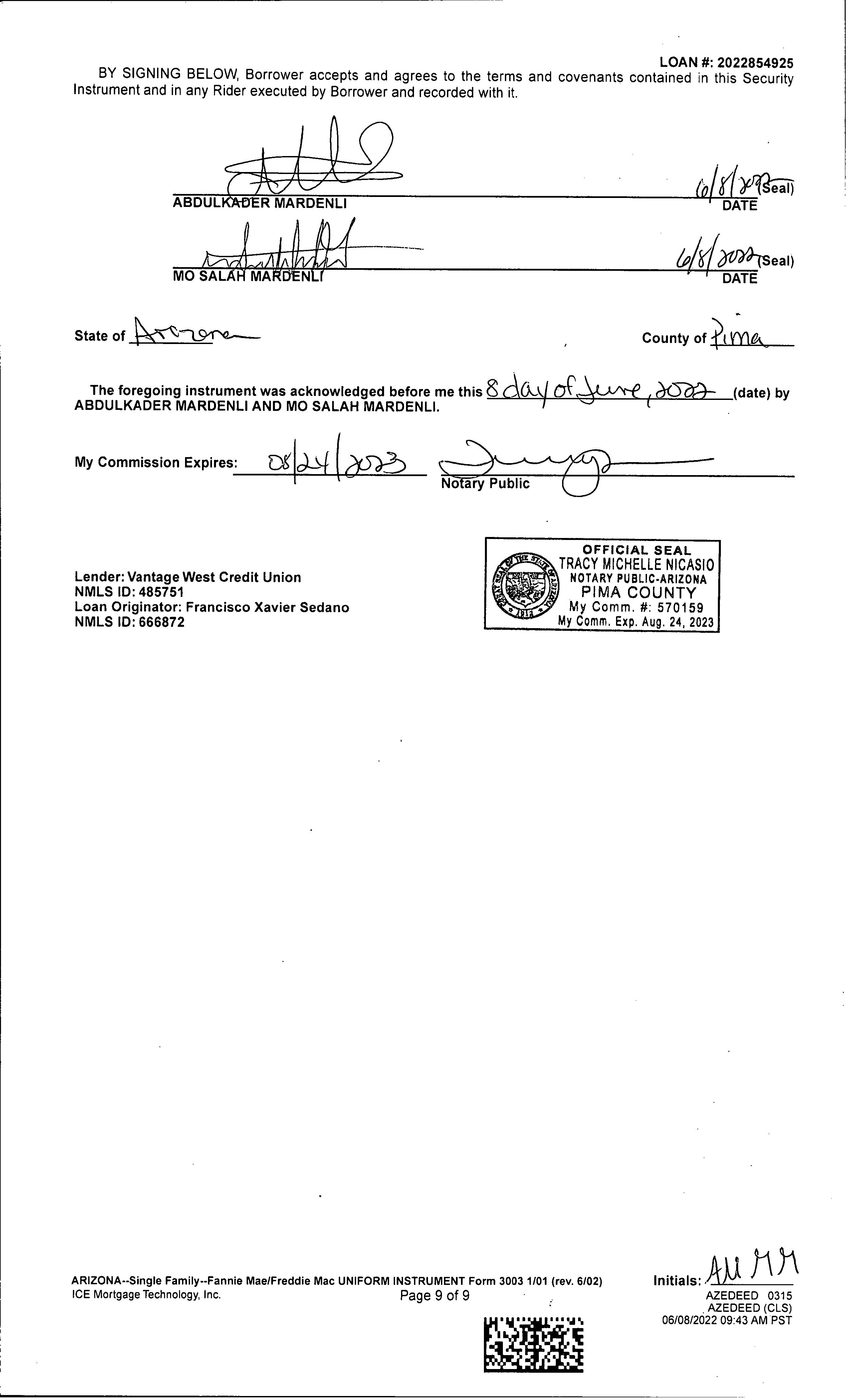 OWNER: MARDENLI ABDULKARDER & MO AFFIDAVIT 2022 66773 06/08/2022
