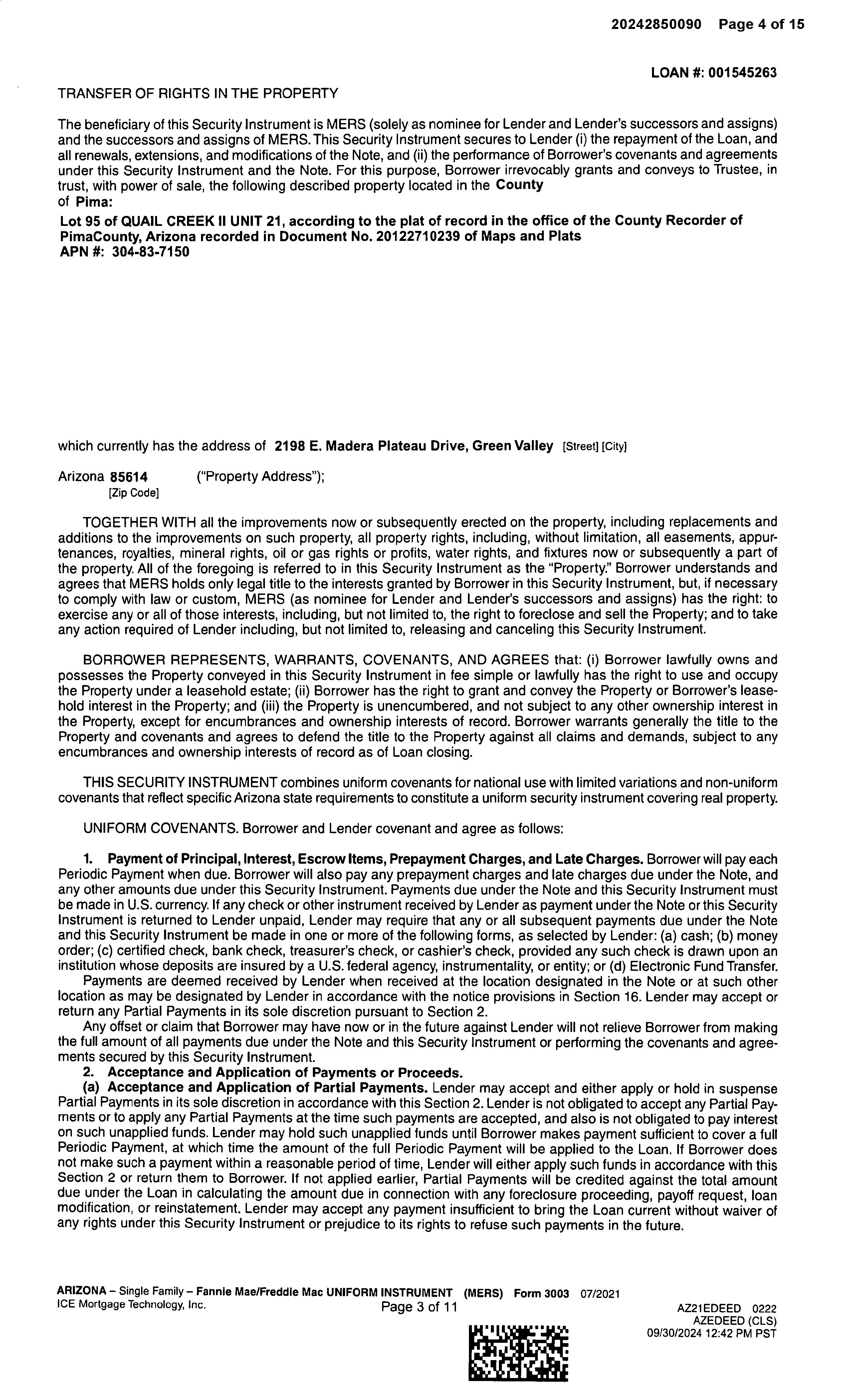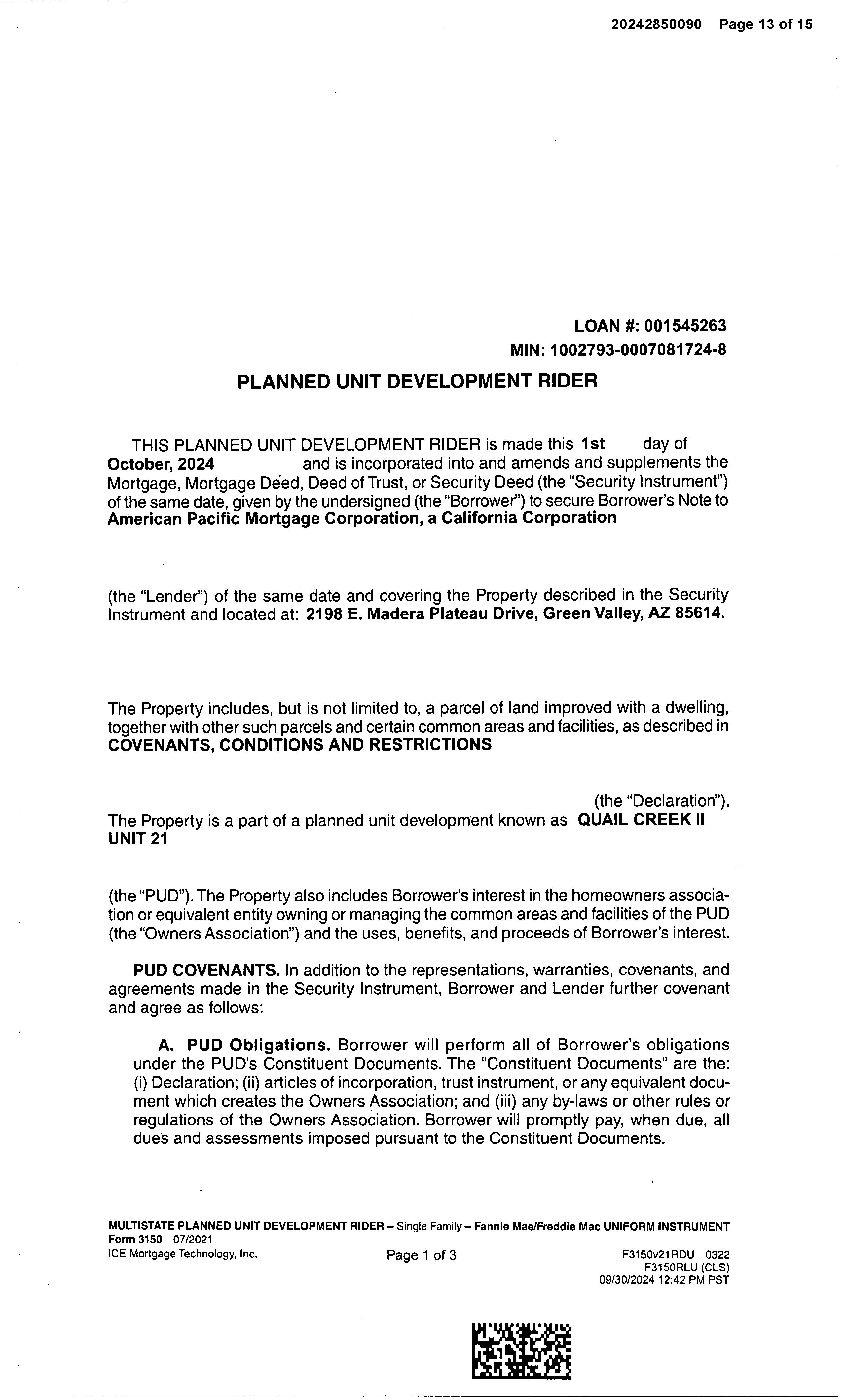 SITUS: 2198 E MADERA PLATEAU DR SAH