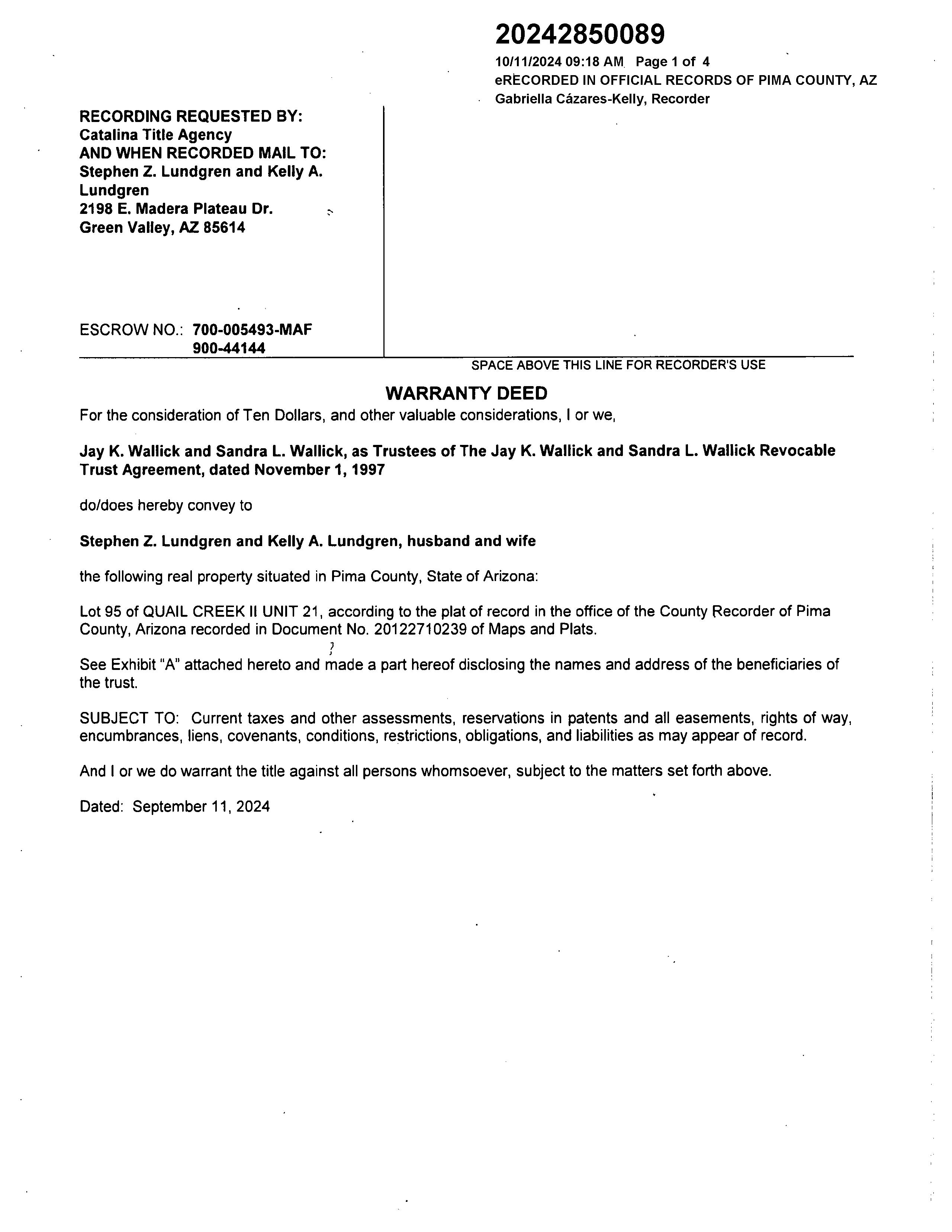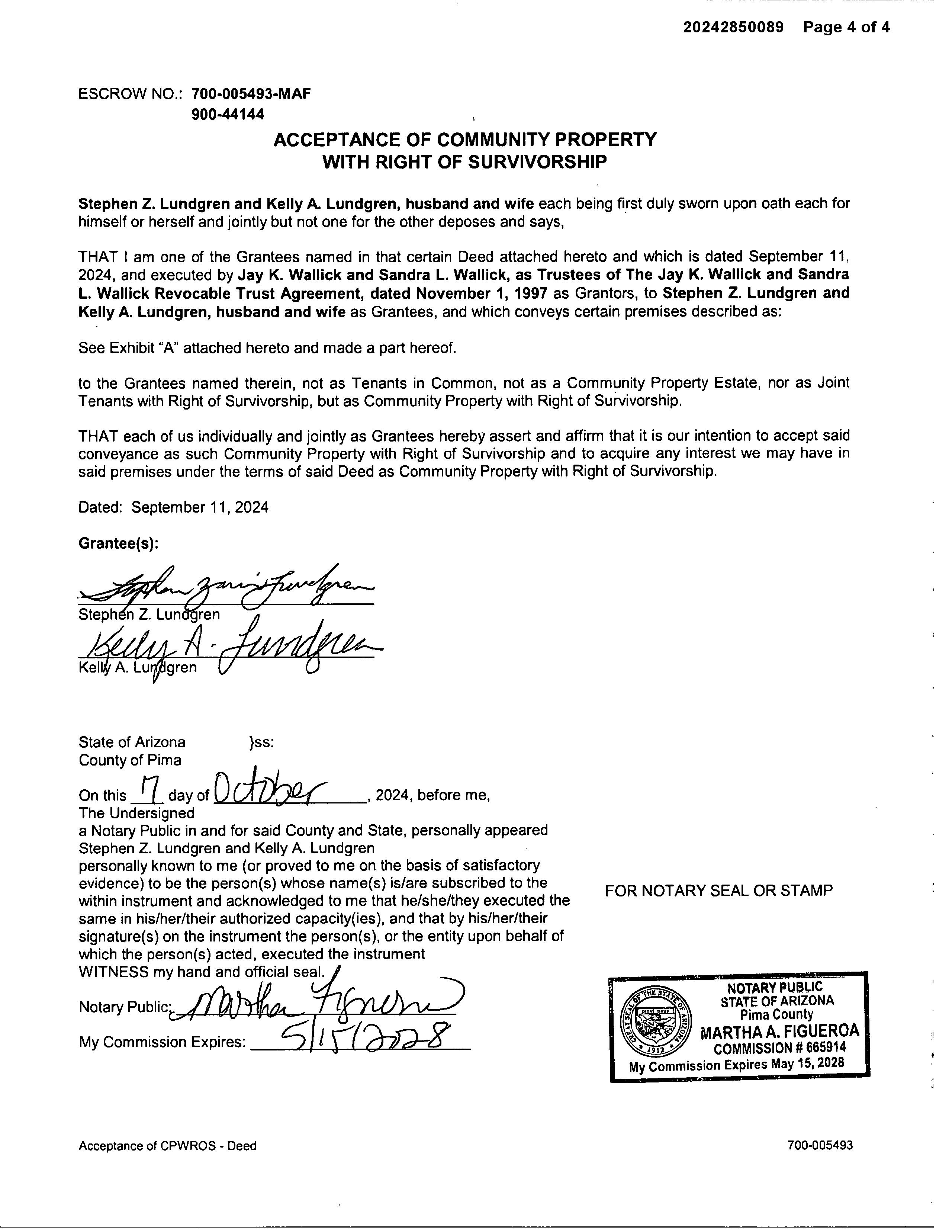 OWNER: LUNDGREN STEPHEN & KELLY AFFIDAVIT