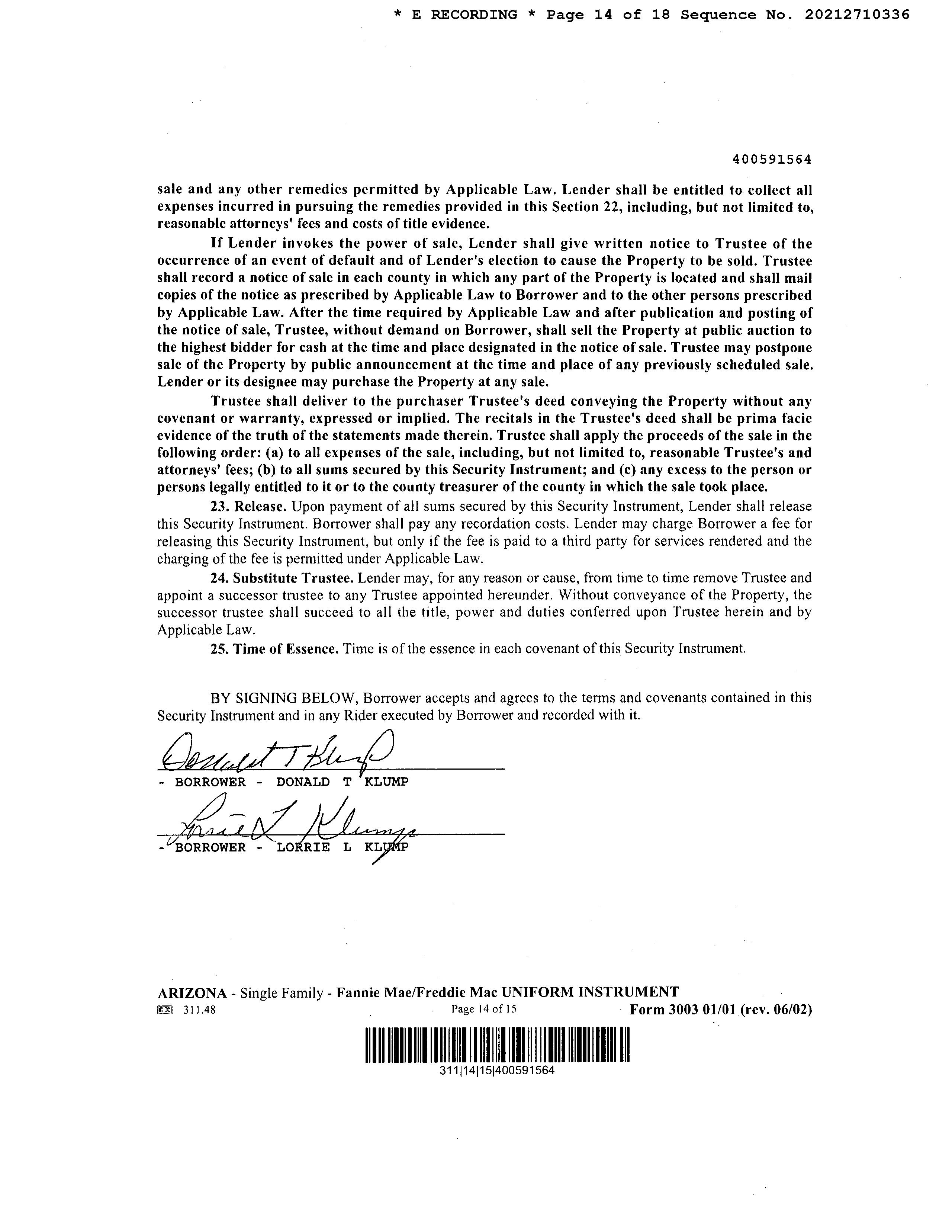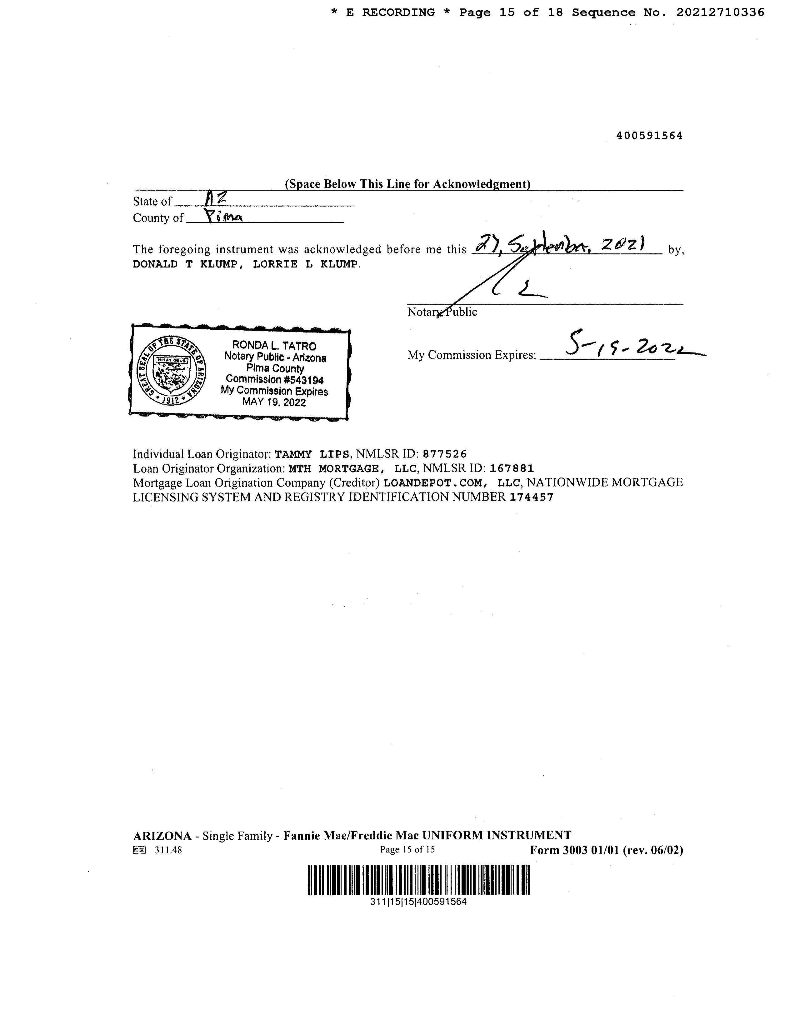 OWNER: KLUMP DONALD & LORRIE AFFIDAVIT 2021 2710335 09/28/2021