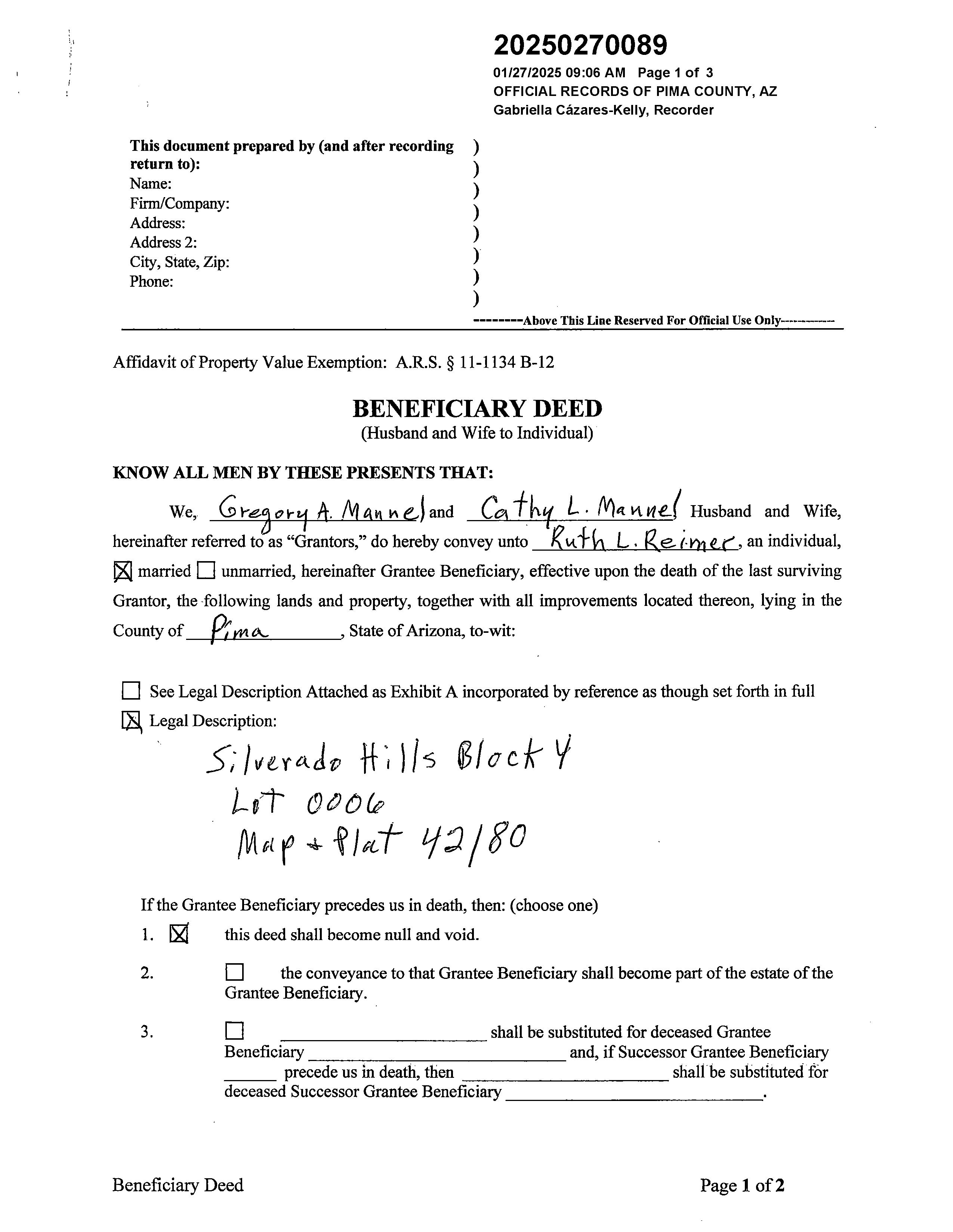 PrimaryOwnerName(s) MANNEL,GREGORYA;MANNEL,CATHYL