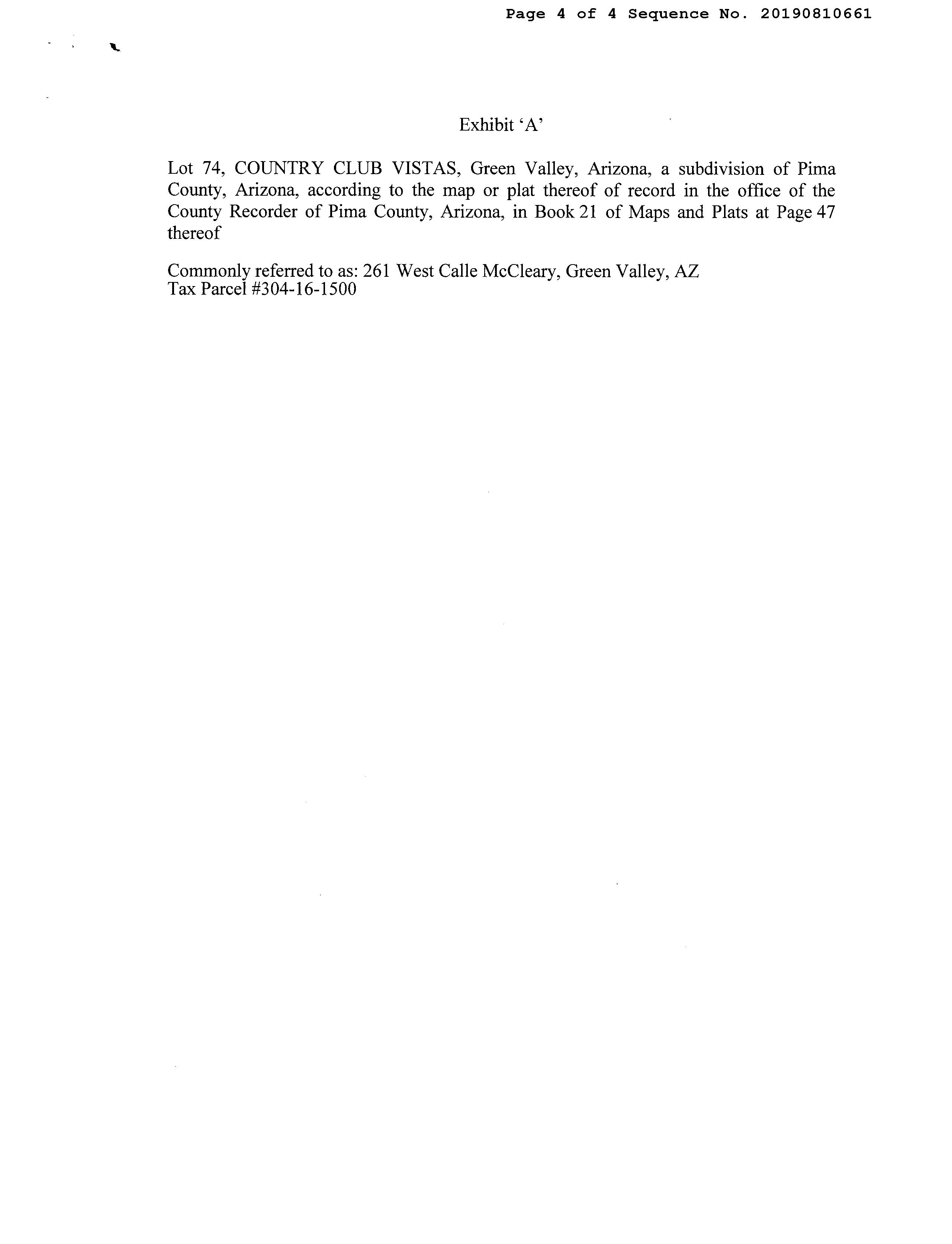 Mailing Address : 261 W Calle Mccleary, Green Valley AZ 85614-3716 C062