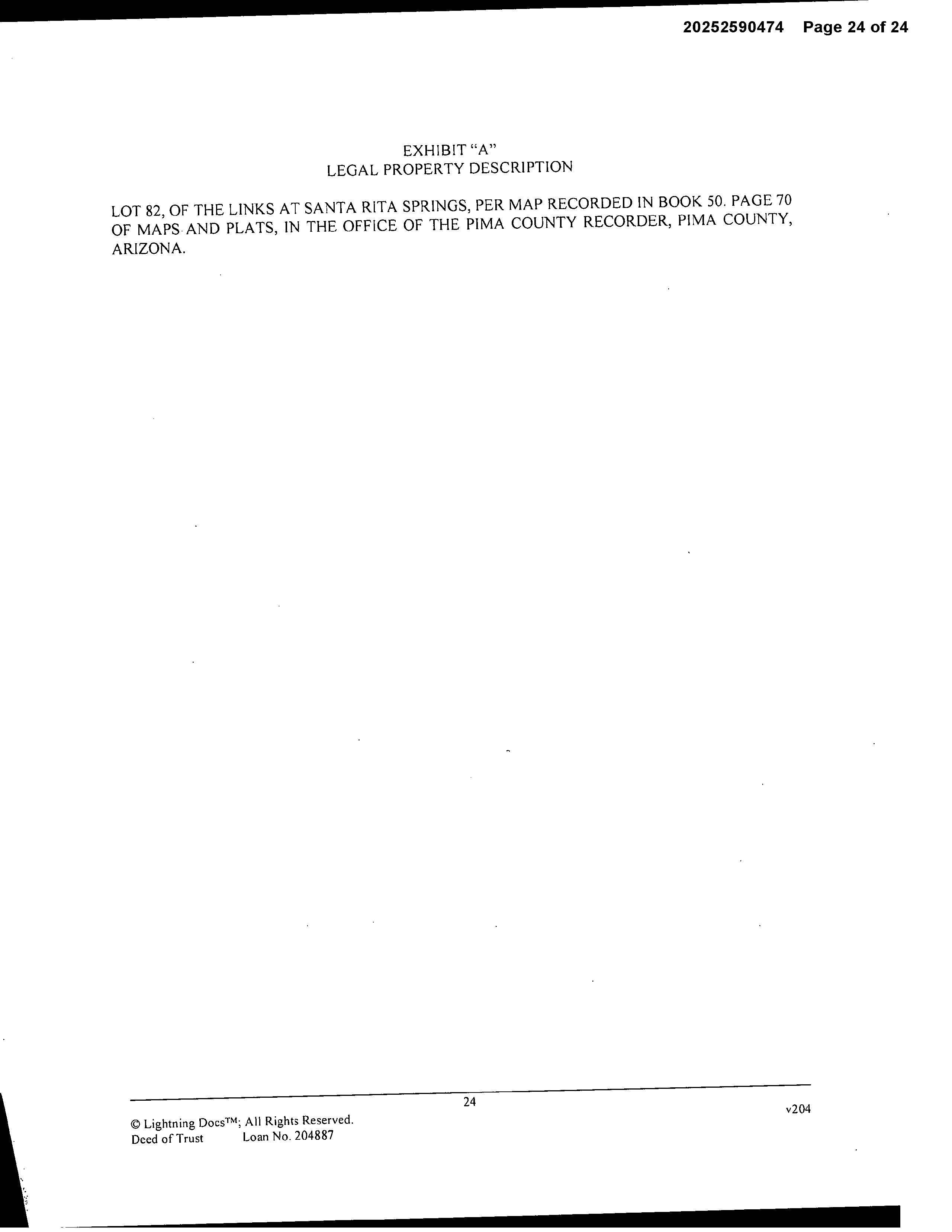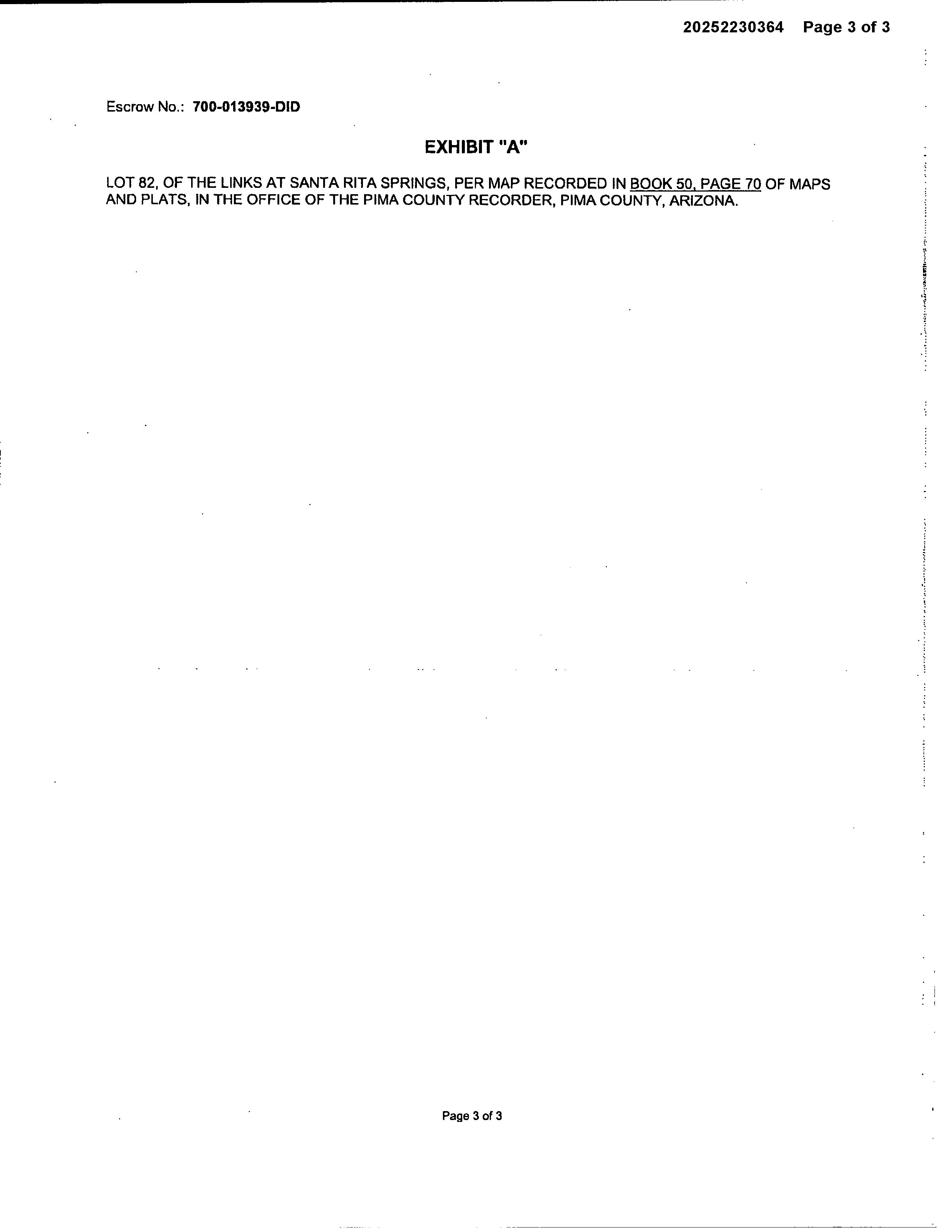 LegalDescriptionDetails LotNumber:82District:GREENVALLEYCity,Municipality,Township:SANTARITASPRINGSSubdivisionName:LINKSATSANTARITASPRINGS Sec/Twn/Rng/Mer:SEC27TWN18SRNG13EBriefDescription:LINKSATSANTARITASPRINGSLOT82Recorder'sMapRef:PLAT:70