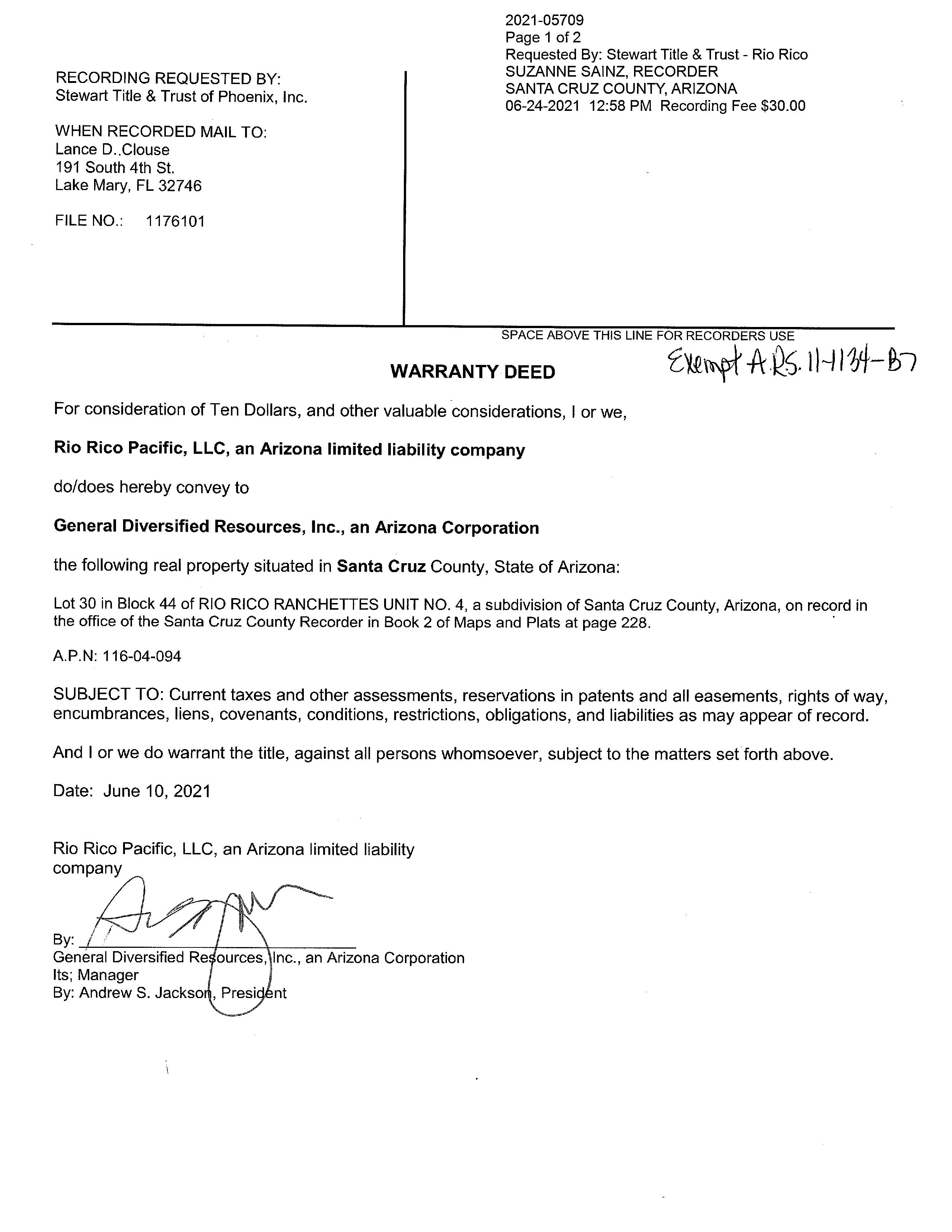 Legal Description : Sub Rio Rico Ranchettes Unit No.4 Lot 30 Of Blk 44