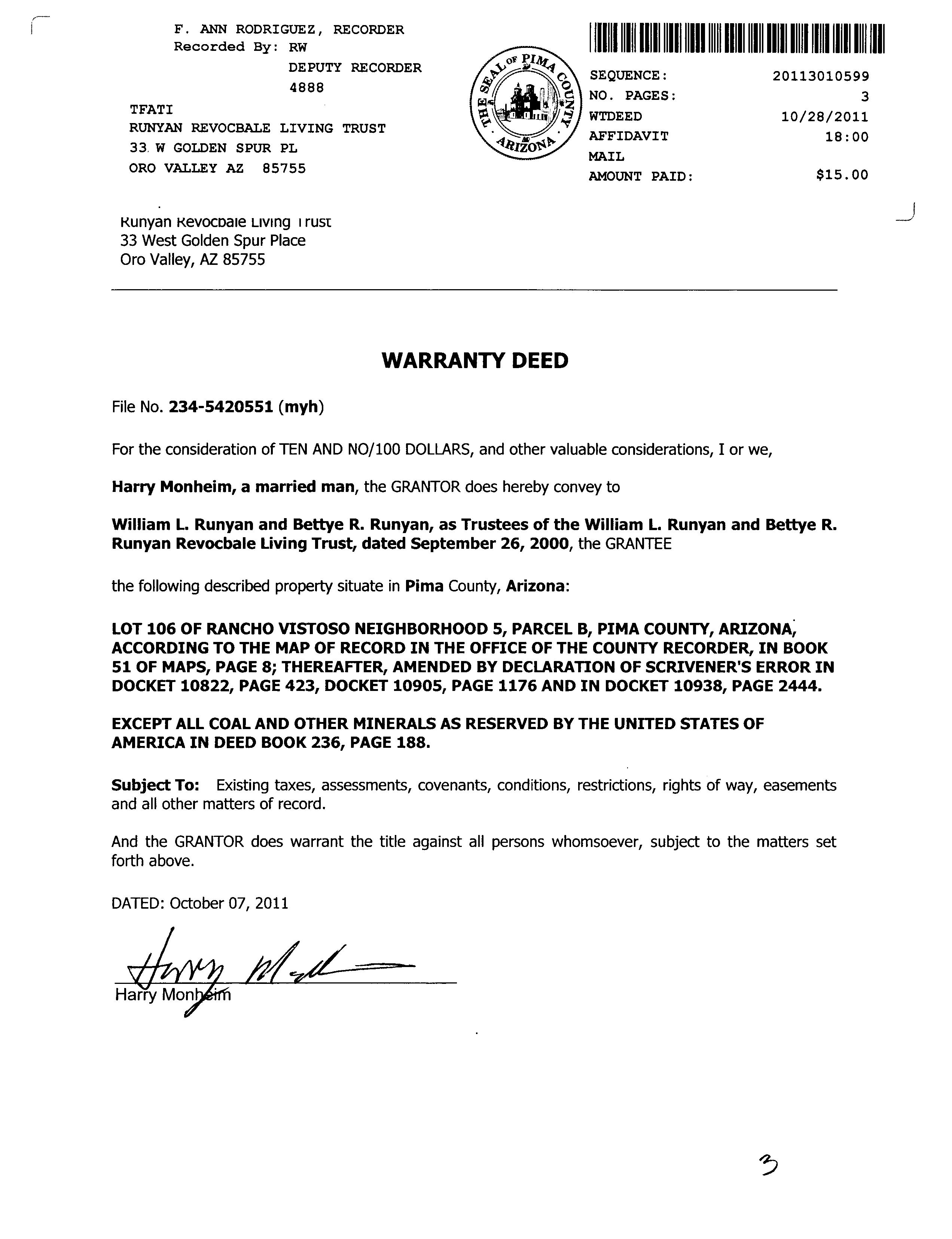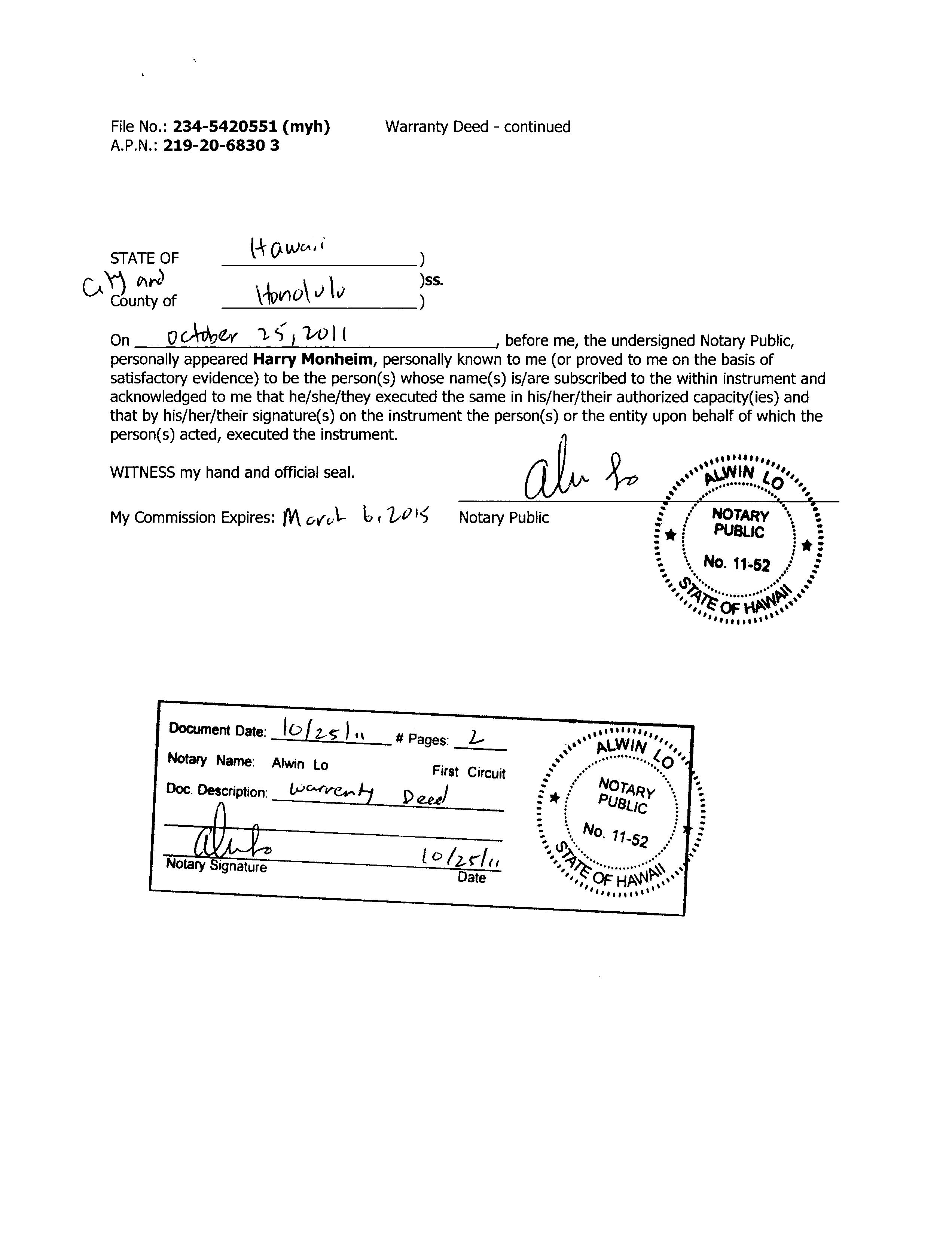 This report is not an insured product or service or a representation of the condition of title to real property. It is not an abstract, legal opinion, opinion of title, title insurance commitment or preliminary report, or any form of Title Insurance or Guaranty. This report is issued exclusively for the benefit of the Applicant therefor and may not be used or relied upon by any other person. This report may not be reproduced in any manner without First Americans prior written consent. First American does not represent or warrant that the information herein is complete or free from error, and the information herein is provided without any warranties of any kind, as-is, and with all faults. As a material part of the consideration given in exchange for the issuance of this report, recipient agrees that First Americans sole liability for any loss or damage caused by an error or omission due to inaccurate information or negligence in preparing this report shall be limited to the fee charged for the report. Recipient accepts this report with this limitation and agrees that First American would not have issued this report but for the limitation of liability described above. First American makes no representation or warranty as to the legality or propriety of recipient's use of the information herein.