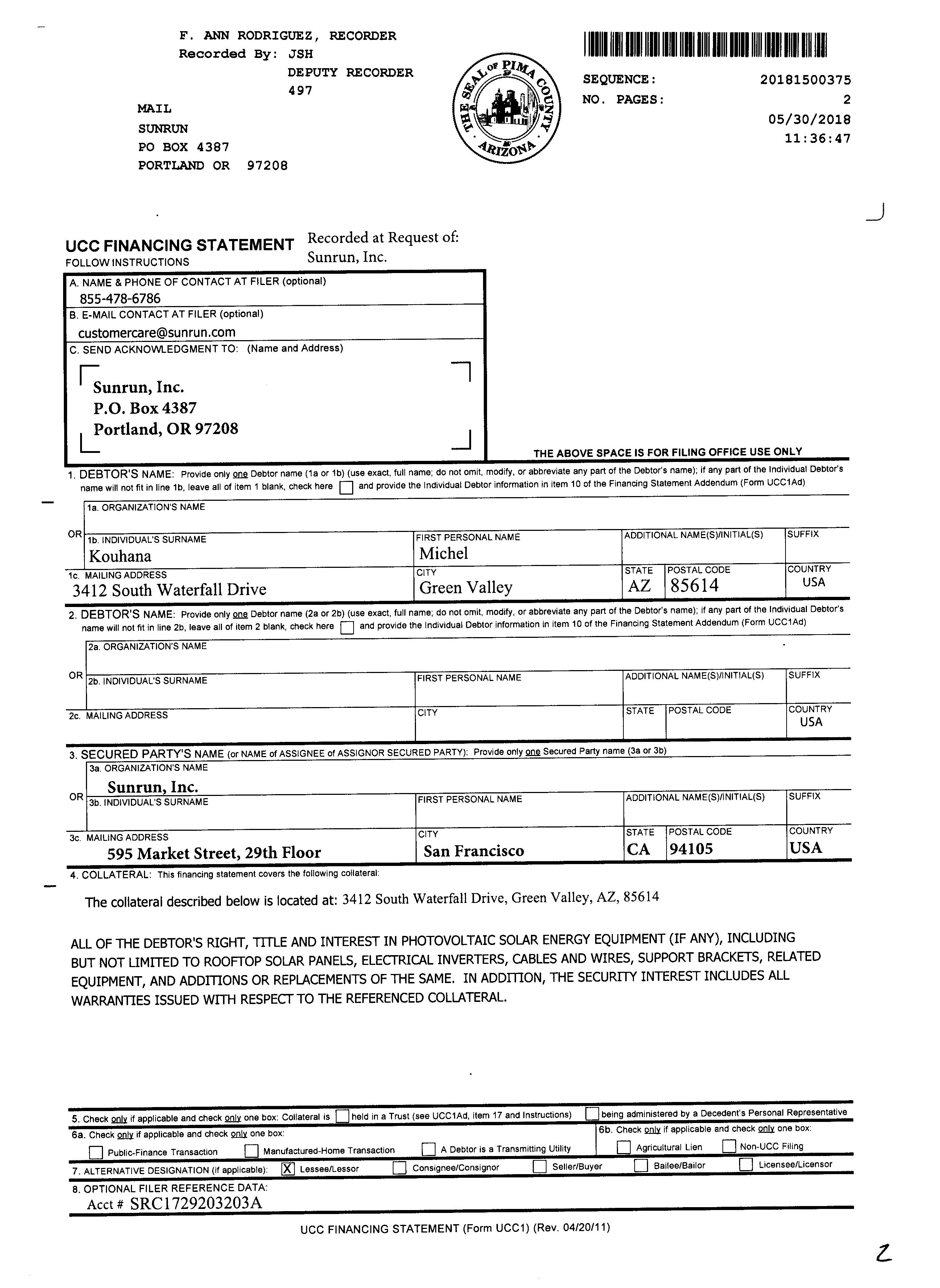 PropertyAddress 3412SWATERFALLDR OrderID:R210610713 City,State&Zip GREENVALLEY,AZ85614-5731