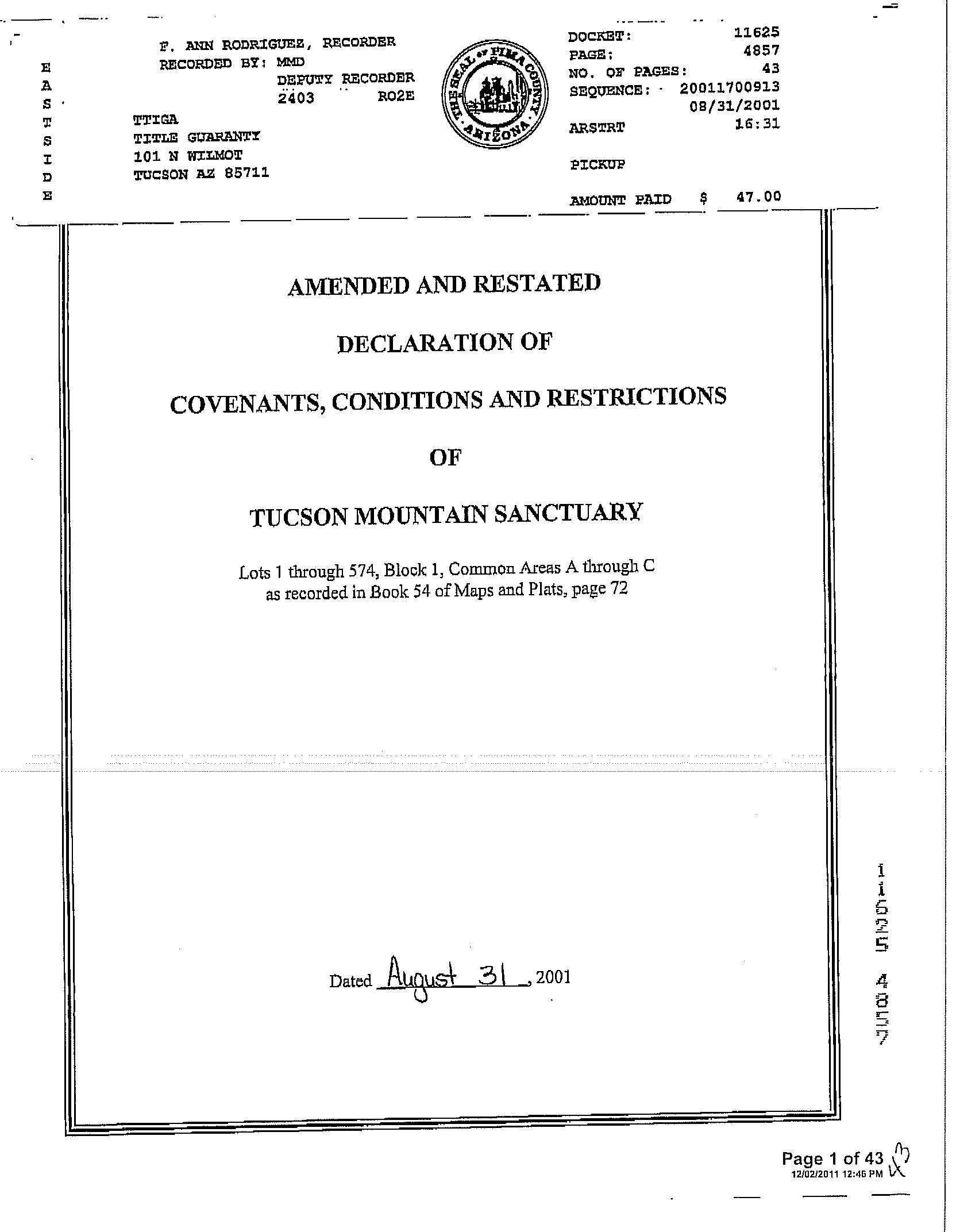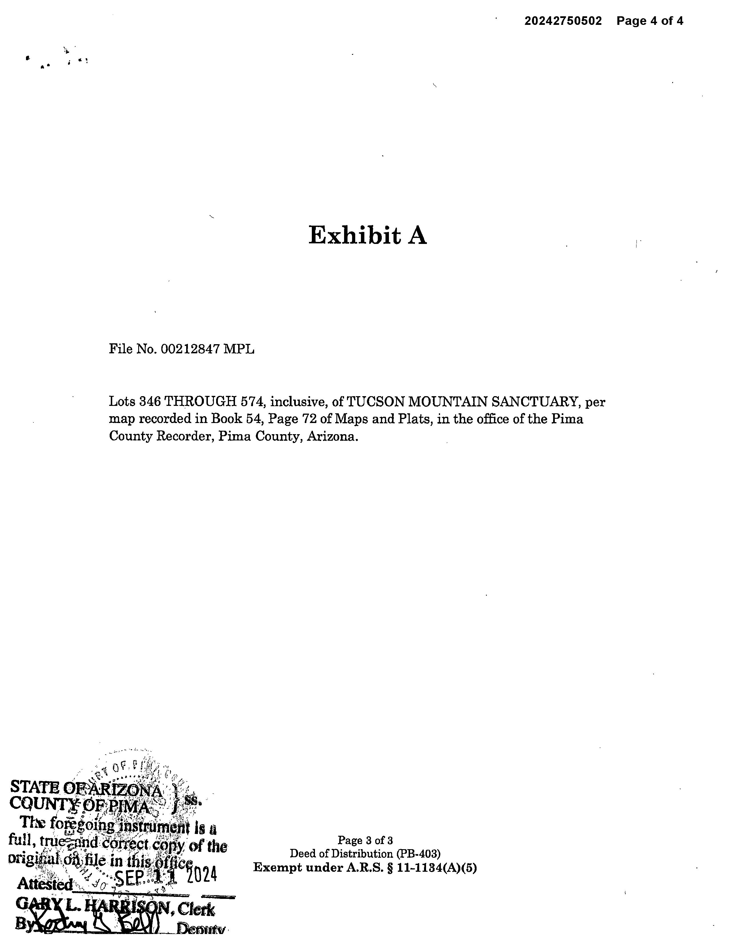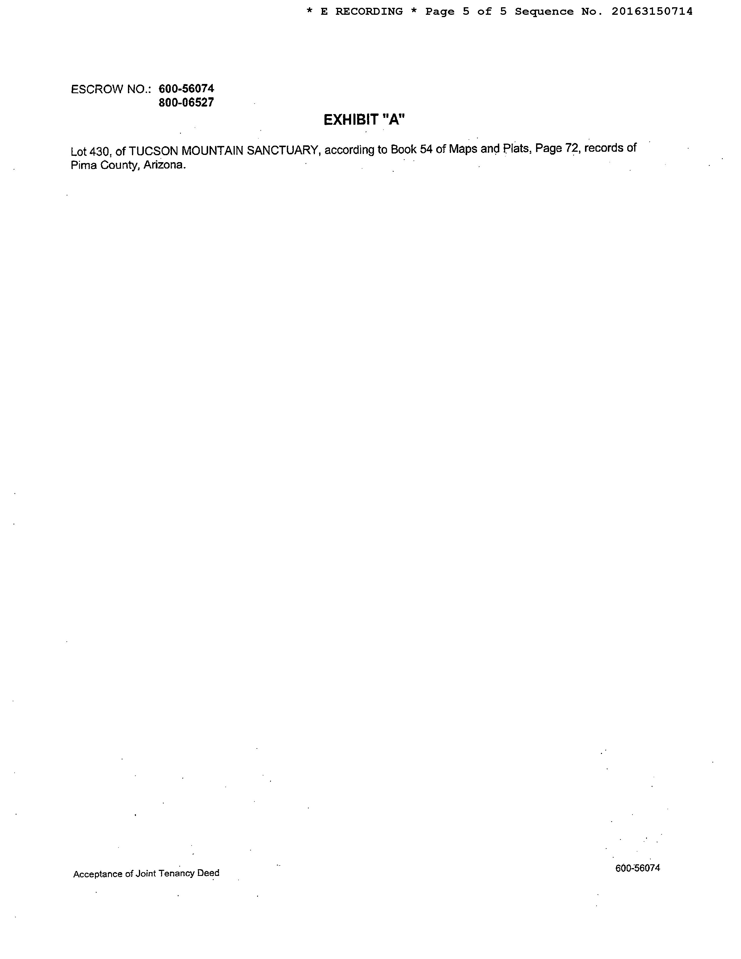 LEGAL: TUCSON MOUNTAIN SANCTUARY LOT 430