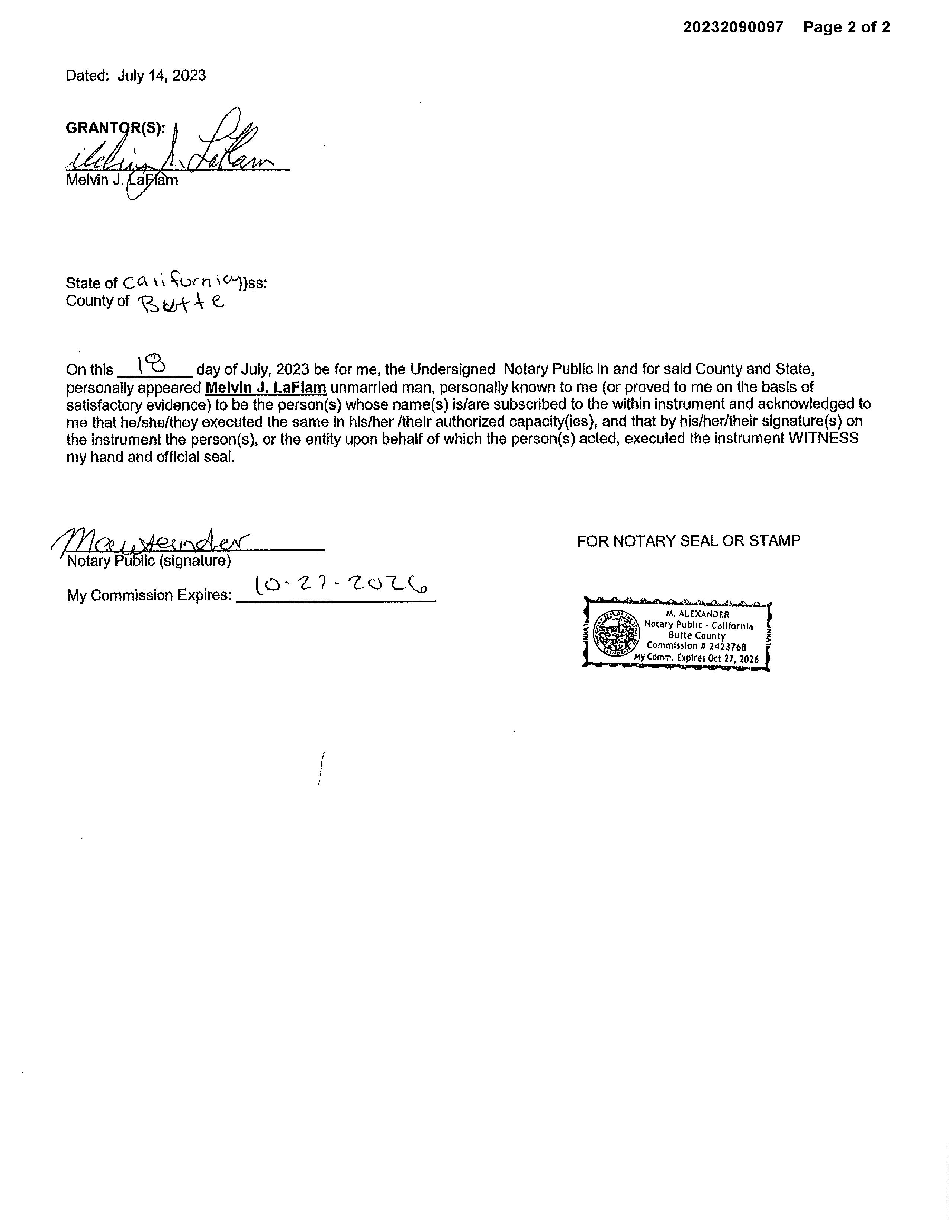 OWNER: LAFLAM LINDA L AFFIDAVIT 2023 2090097 07/28/2023