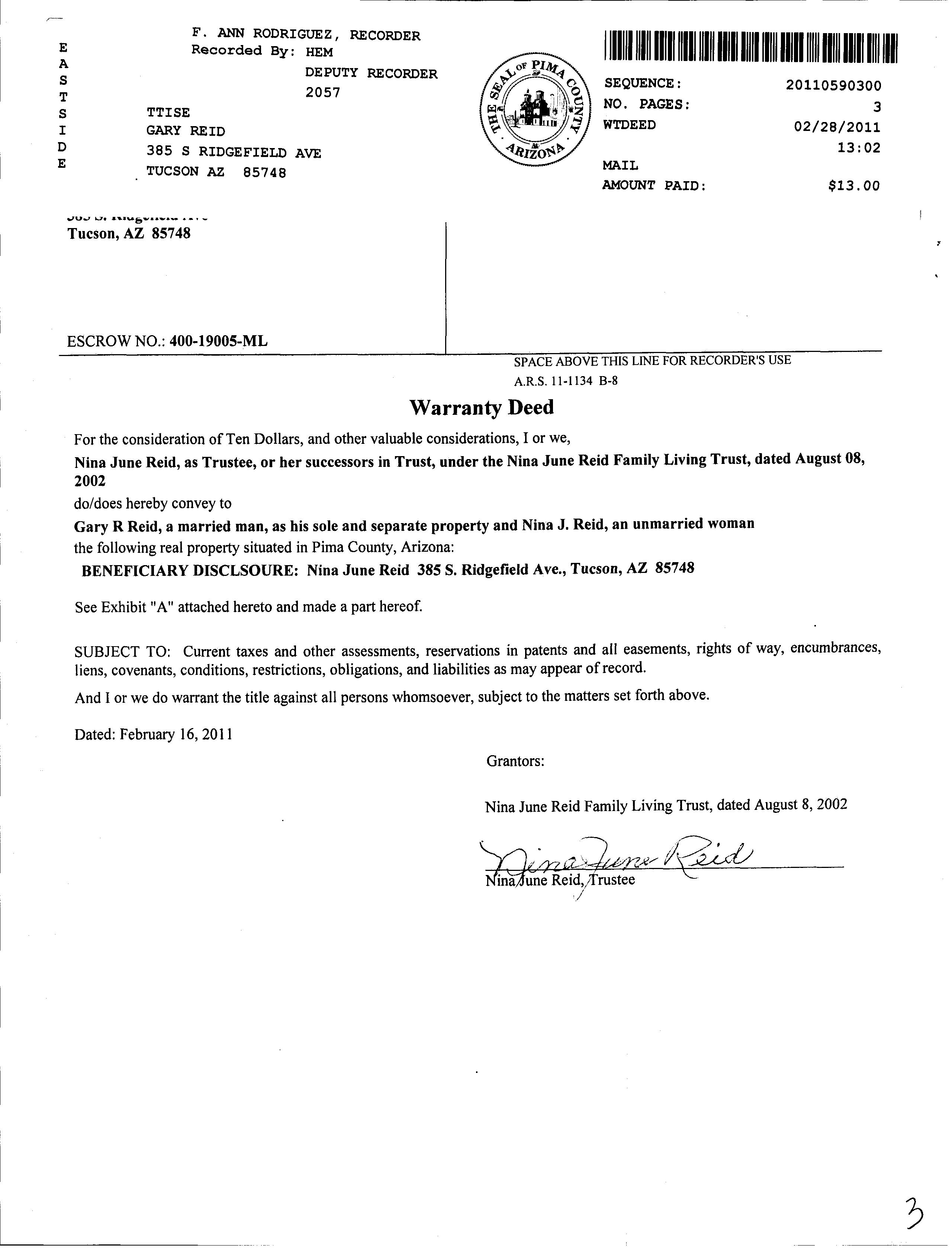 OWNER: REID GARY R & REID NINA J 9374 1624