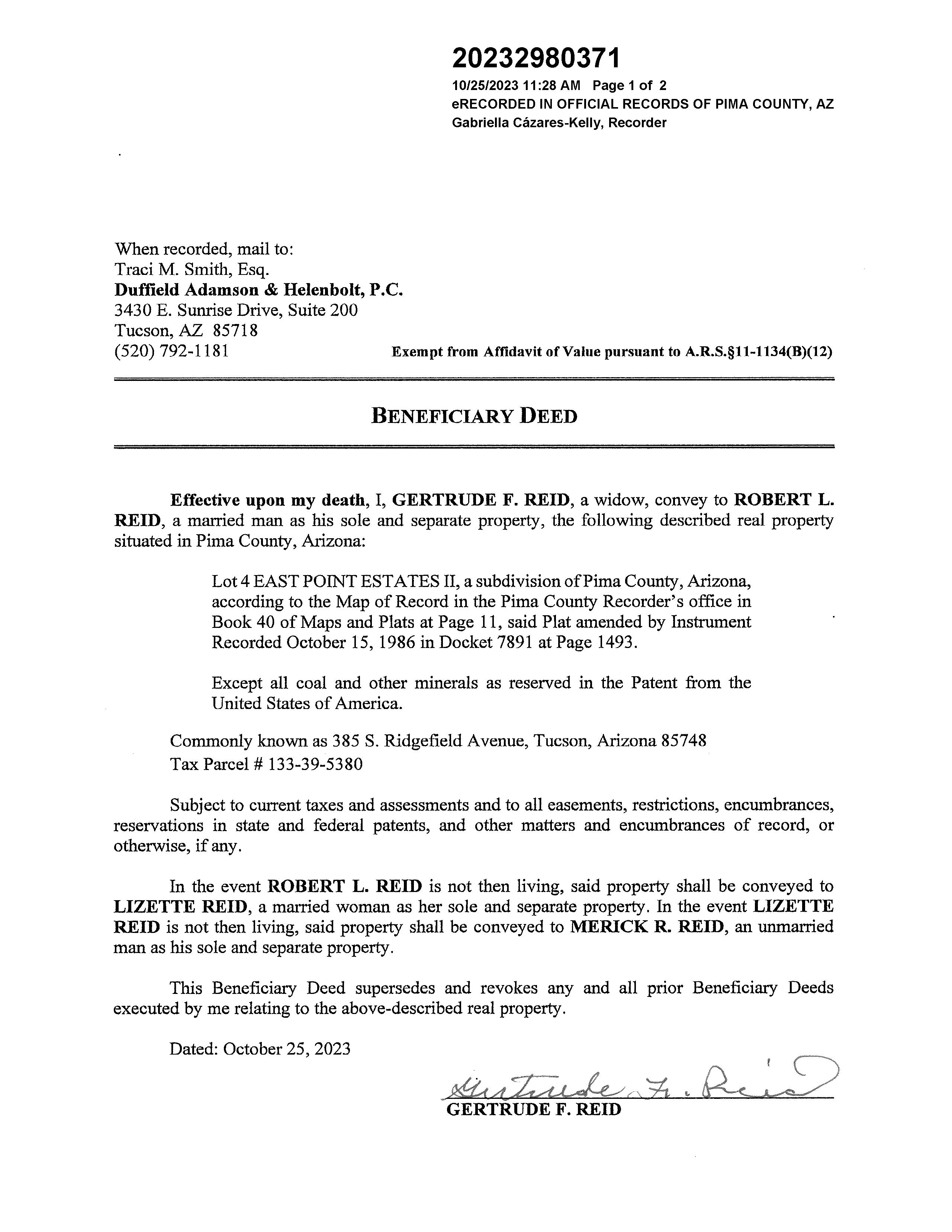 MAIL: 385 S RIDGEFIELD AVE TUCSON AZ 85748-6769