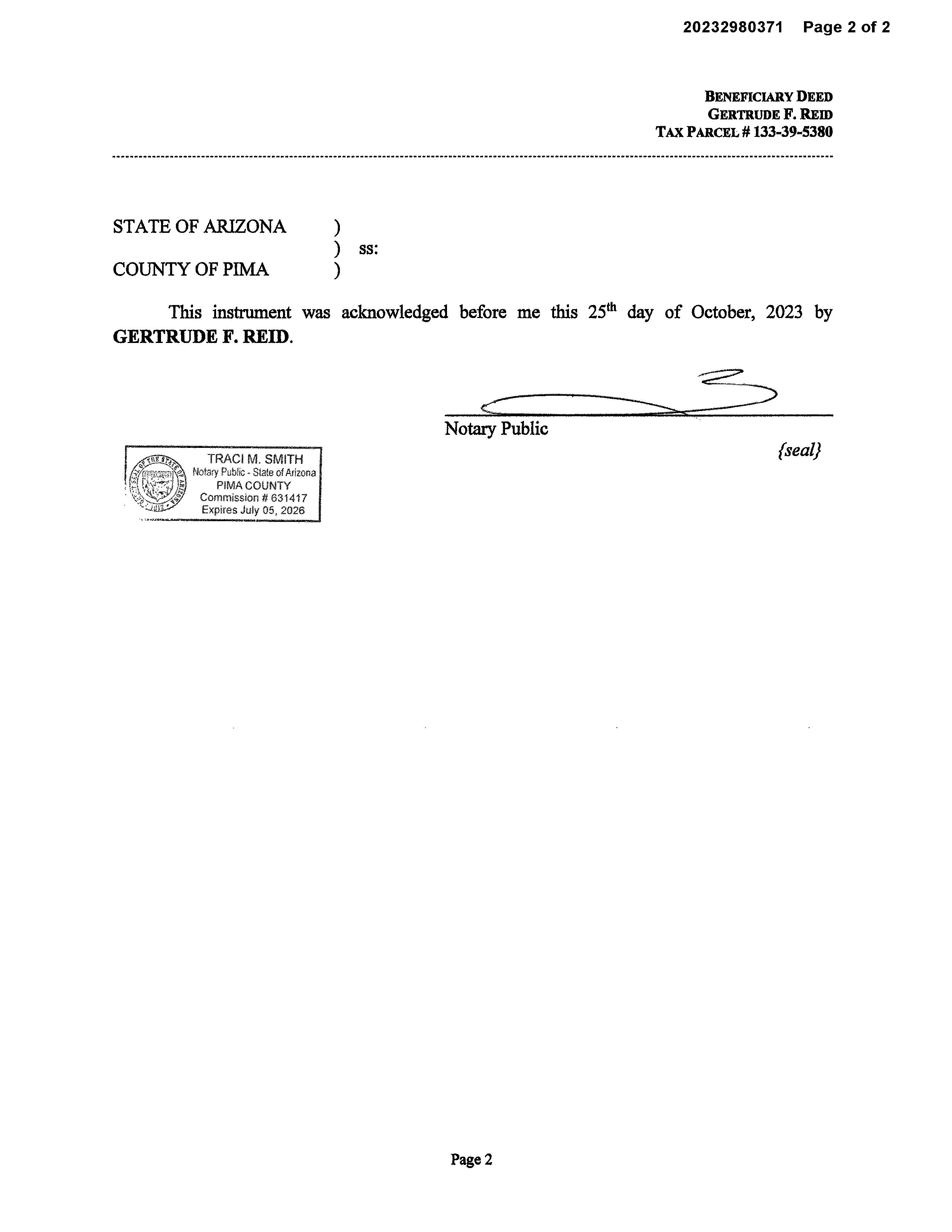 This information is furnished without fee and without benefit of a complete title search. No liability is assumed by First American Title. If it is desired that liability be assumed, you may apply for a policy of title insurance with First American Title Insurance Company.