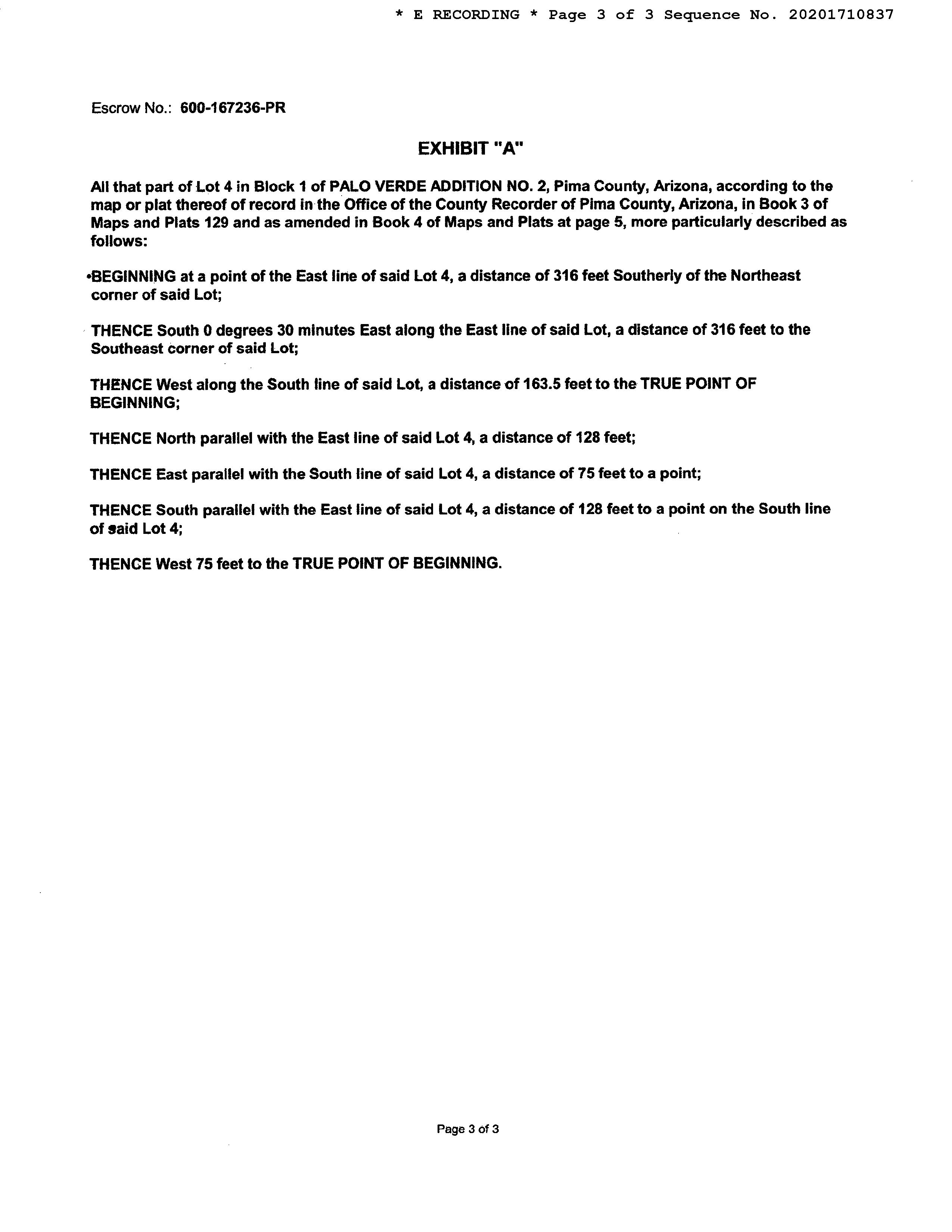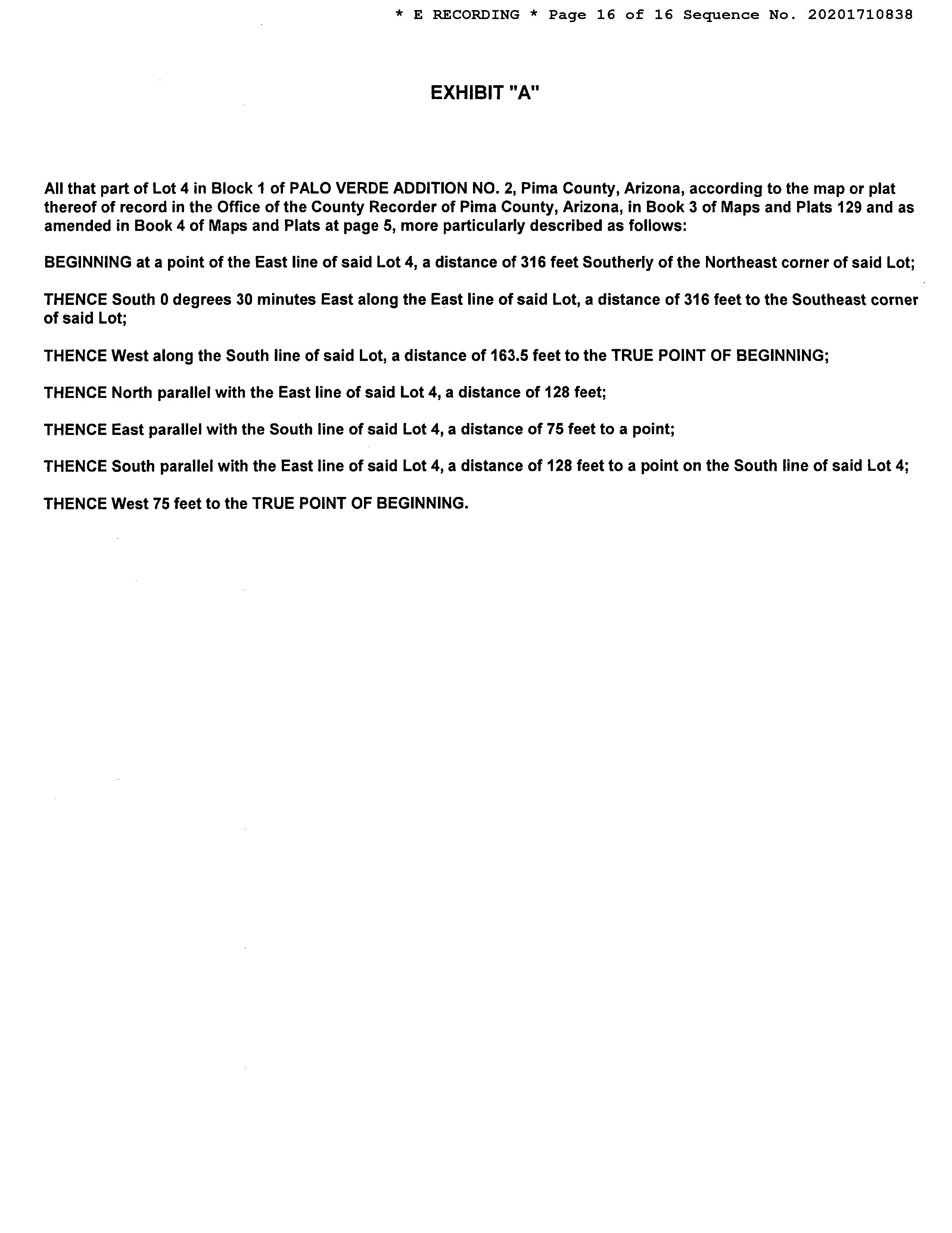 LEGAL: PALO VERDE ADDITION NO 2 AMENDED E75' W226.40' S128' LOT 4 BLK 1
