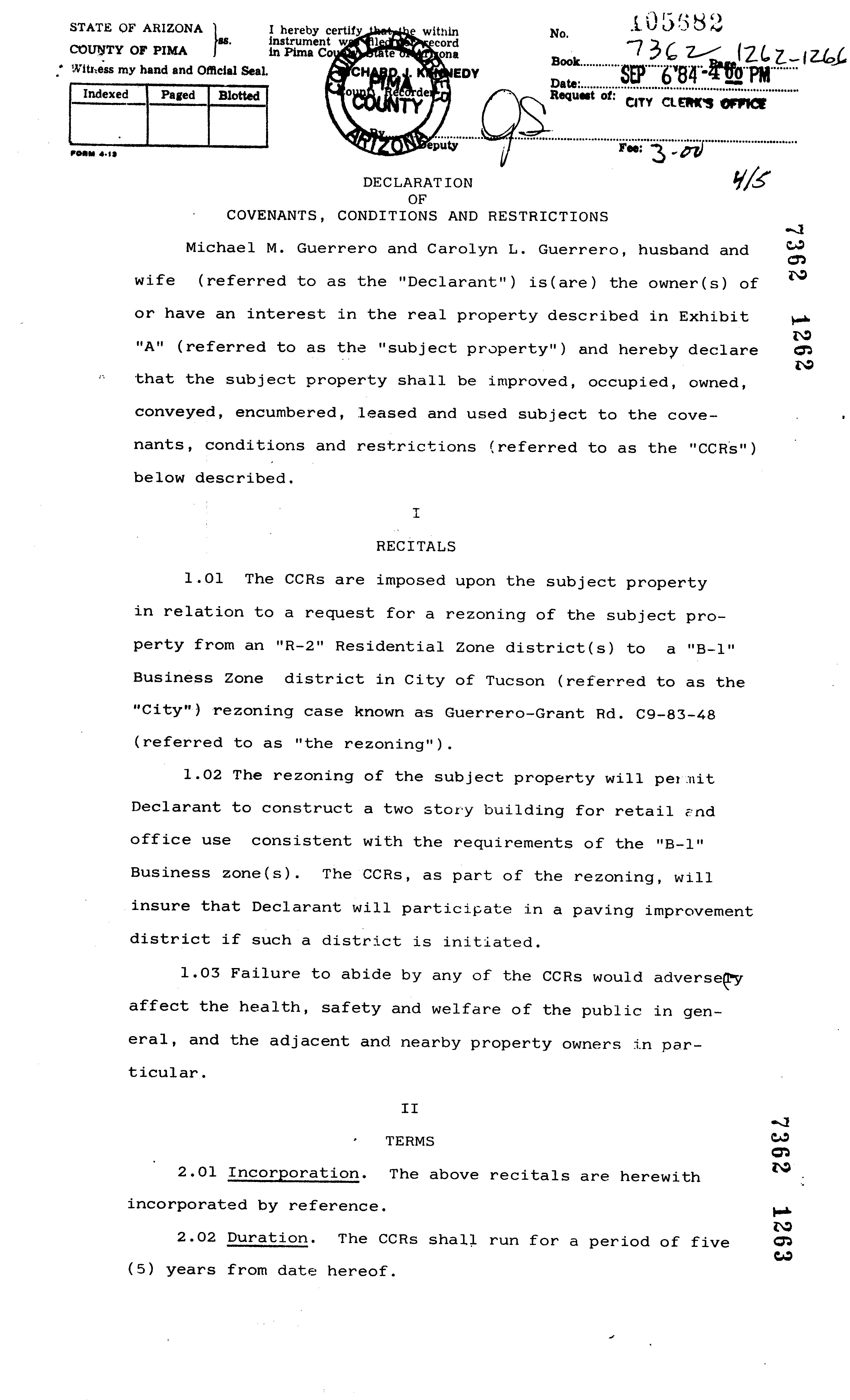 Covenants, Conditions & Restrictions
